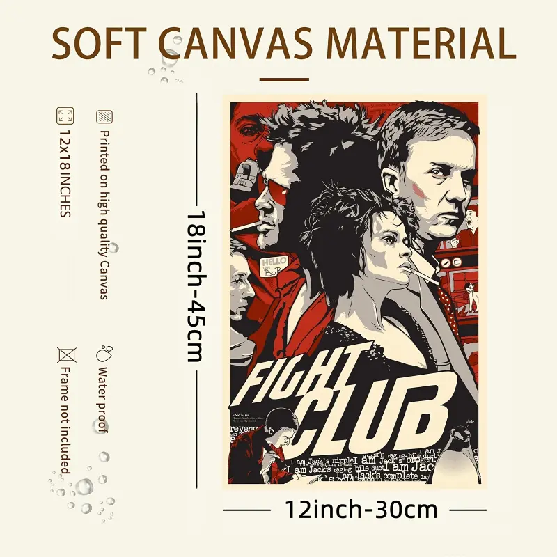Room Decoration 1 Piece Frameless Fight Club Movie Canvas Poster, 30.48x 45.72cm , Soft Canvas Material, Suitable for Bars, Clubs, Cafes, Restaurants