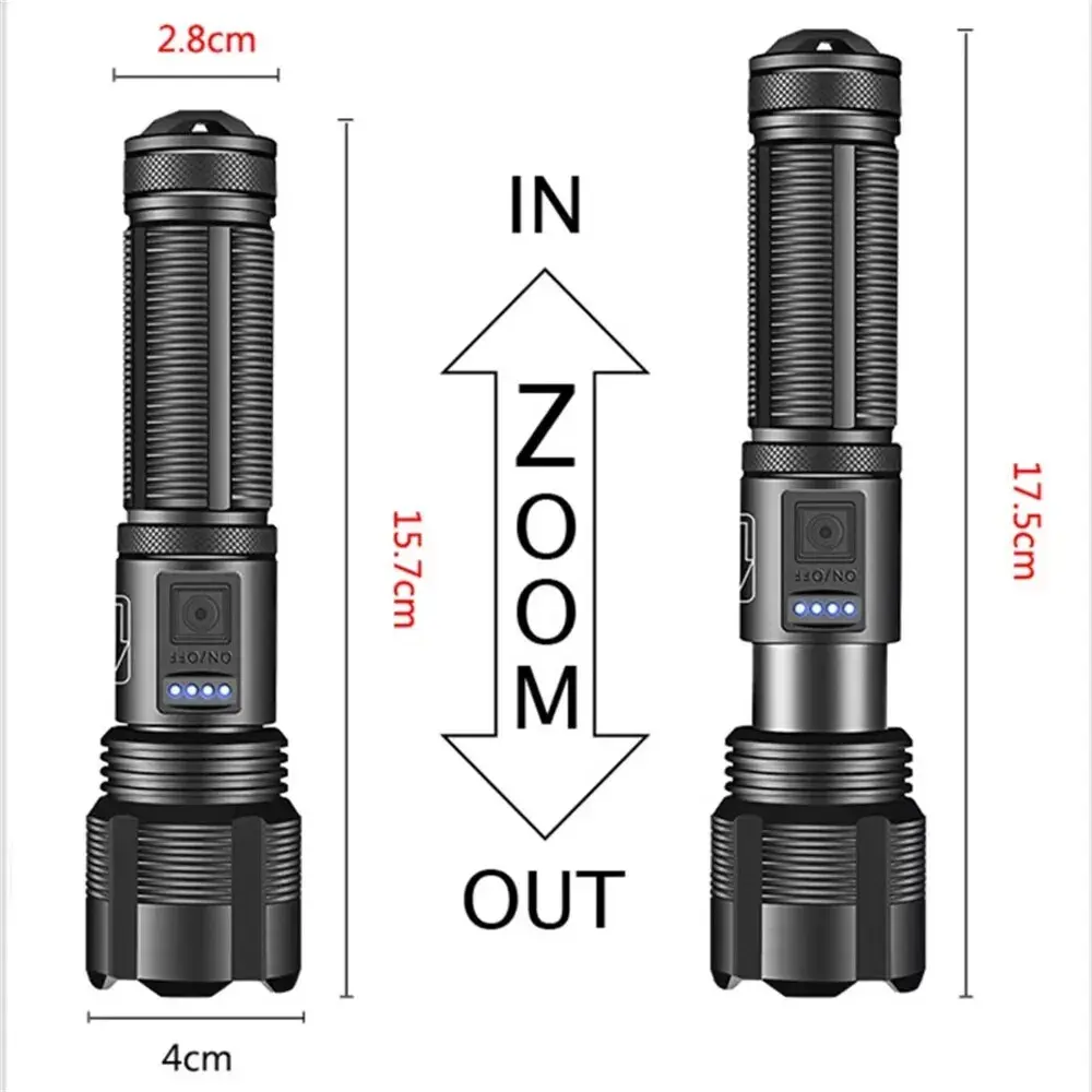 Name: XHP70 Super Bright LED Flashlight USB Rechargeable Zoom Tactical Flashlight Inspection Light