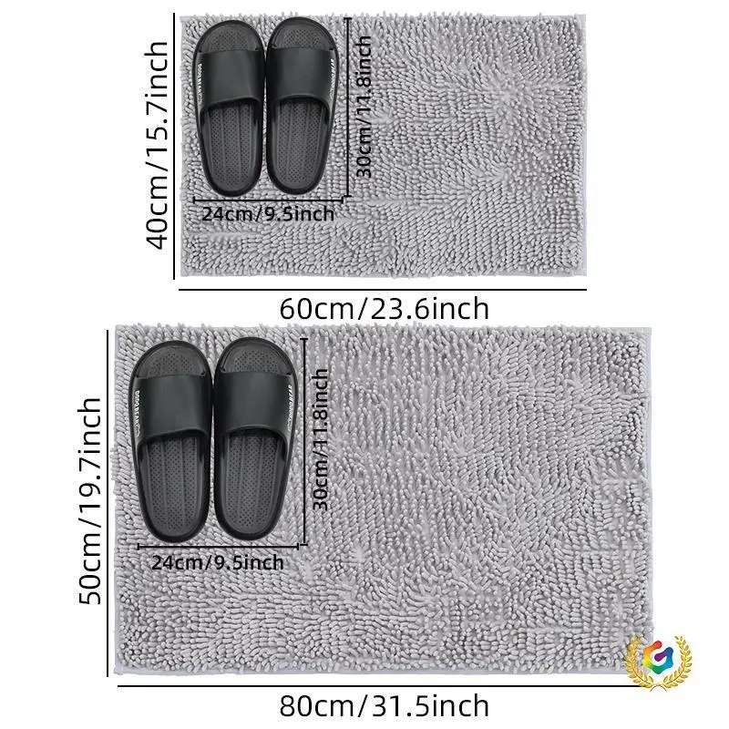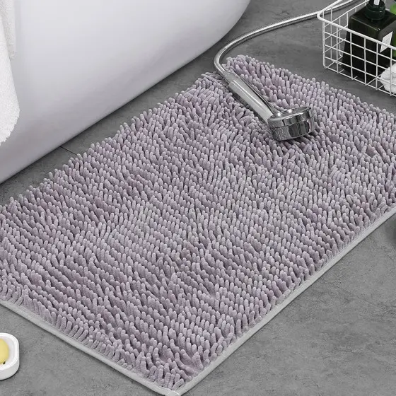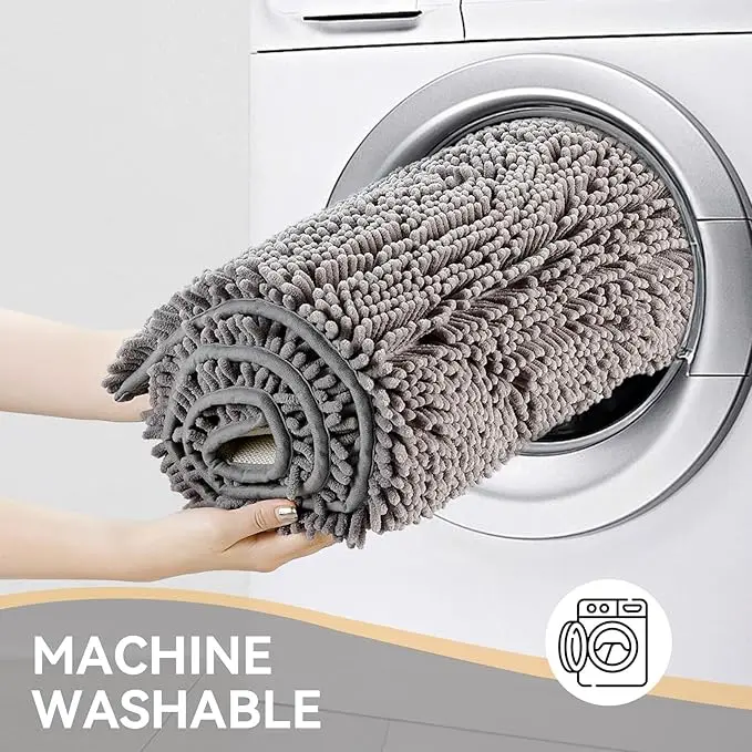 Low density low lint bathroom mat washable dog door mat, quick drying chenille pet door mat, machine washable indoor and outdoor carpet gray