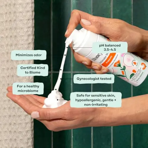 The Honey Pot’s Prebiotic Foaming Wash promotes a healthy balance of good vaginal bacteria with the infusion of prebiotics and the probiotic lactobascillus ferment and is gentle and non-irritating