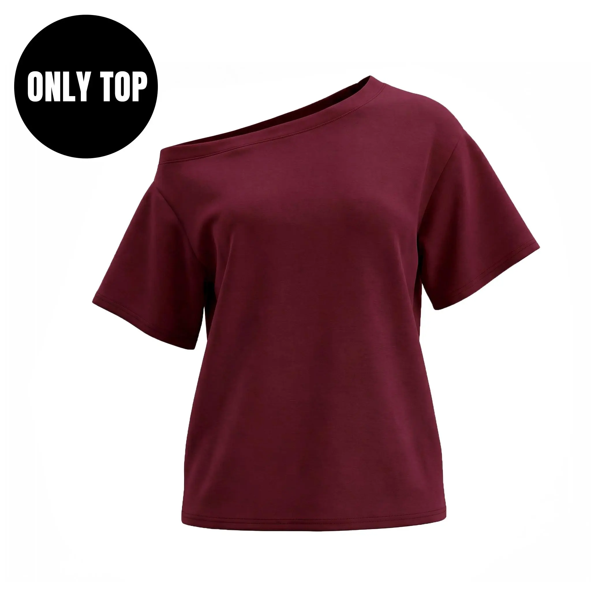 Fashion-forward sloping neckline that frames your collarbone beautifully.