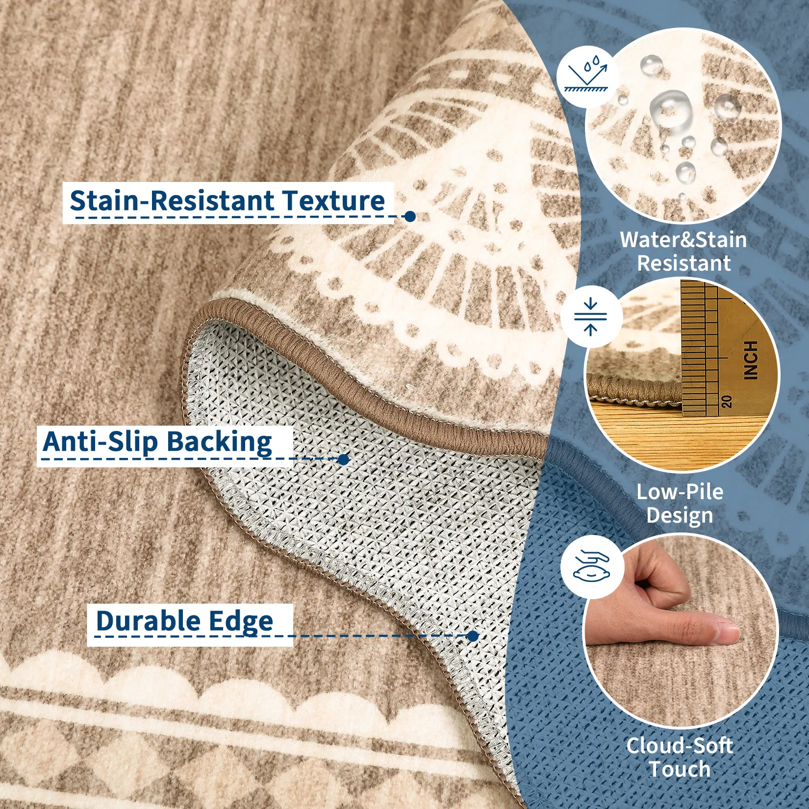 This rug features a non-slip backing, securing it firmly to wooden floors, tile, or other hard surfaces. No need to worry about slipping during daily activities or when children are playing. It provides a stable and safe space for your family, giving you peace of mind. 🛋️