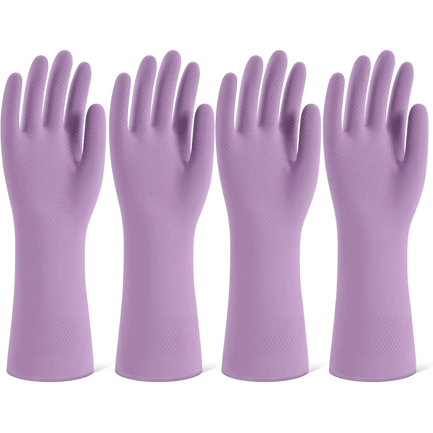for Dishwashing, 4 Pairs Reusable Kitchen Gloves for Washing Dishes and Household Cleaning, Purple Dish Gloves with Flocked Lining and Grip, Perfect for Men - M