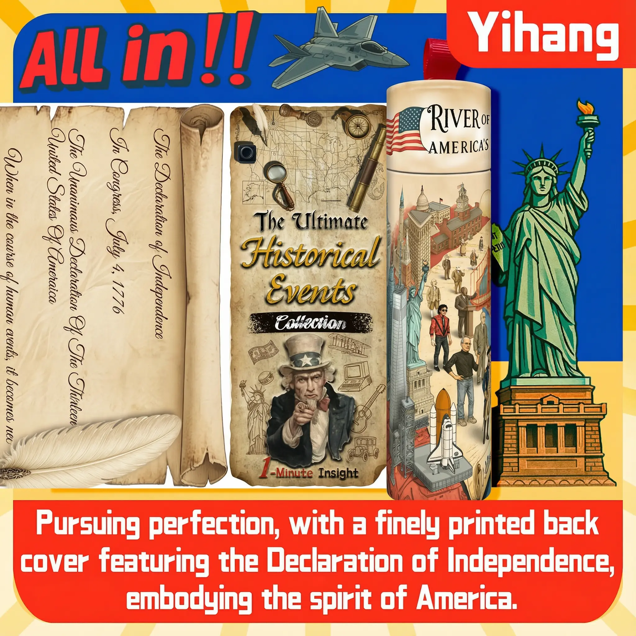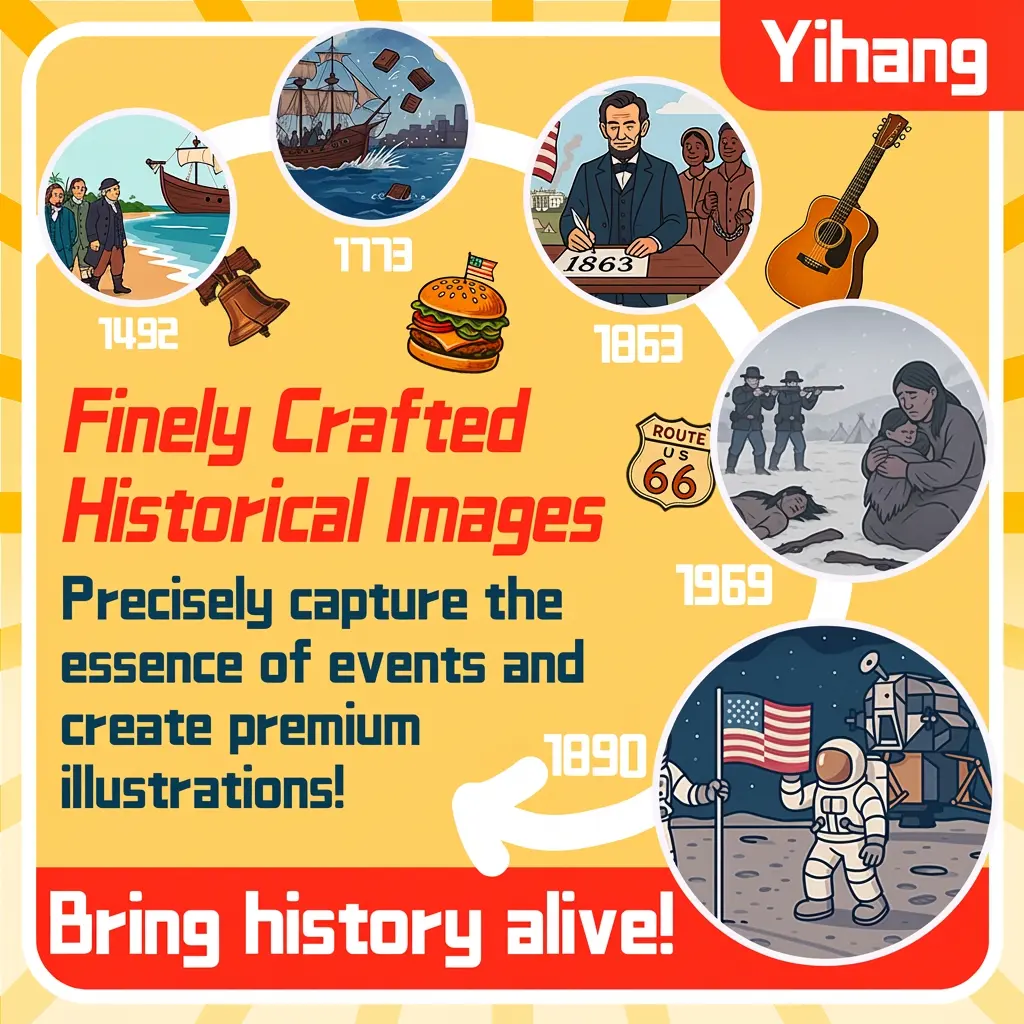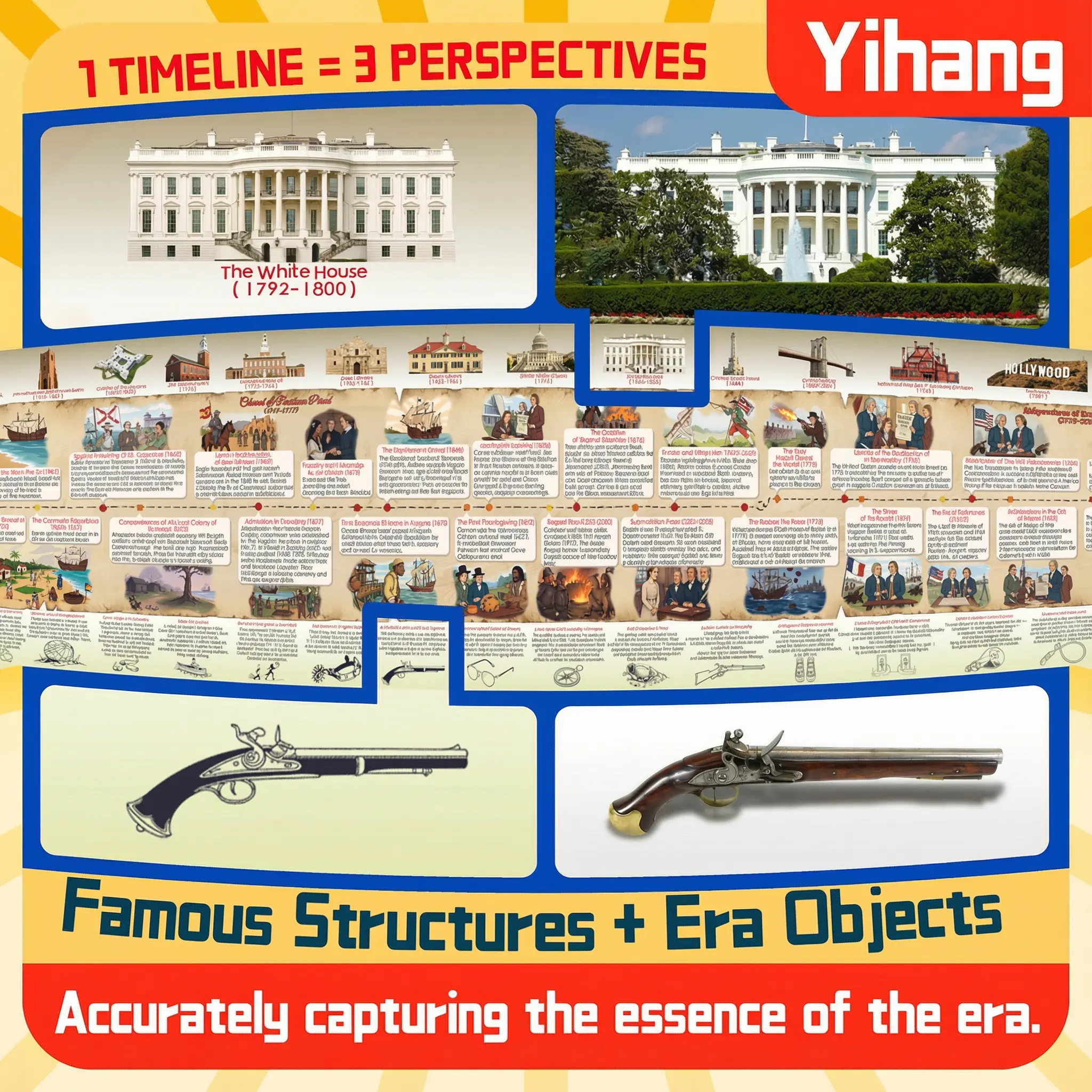 U.S. History Timeline Scroll American History Chart Illustrated Historical Events Poster 2 Meter Educational Timeline for Kids Teens Adults Classroom Wall Decor with Color Coded Milestones Famous Landmarks Inventors Presidents and Era Objects