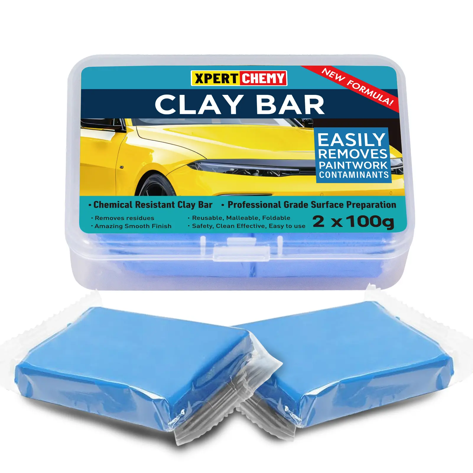 XPERTCHEMY Blue Car Clay Bar 2 Pack 200g(2x100g), Auto Detailing Premium Grade No Scratch Magic Clay Bars Cleaner Kit with Washing and Adsorption Capacity for Car Auto SUV, RV, Truck