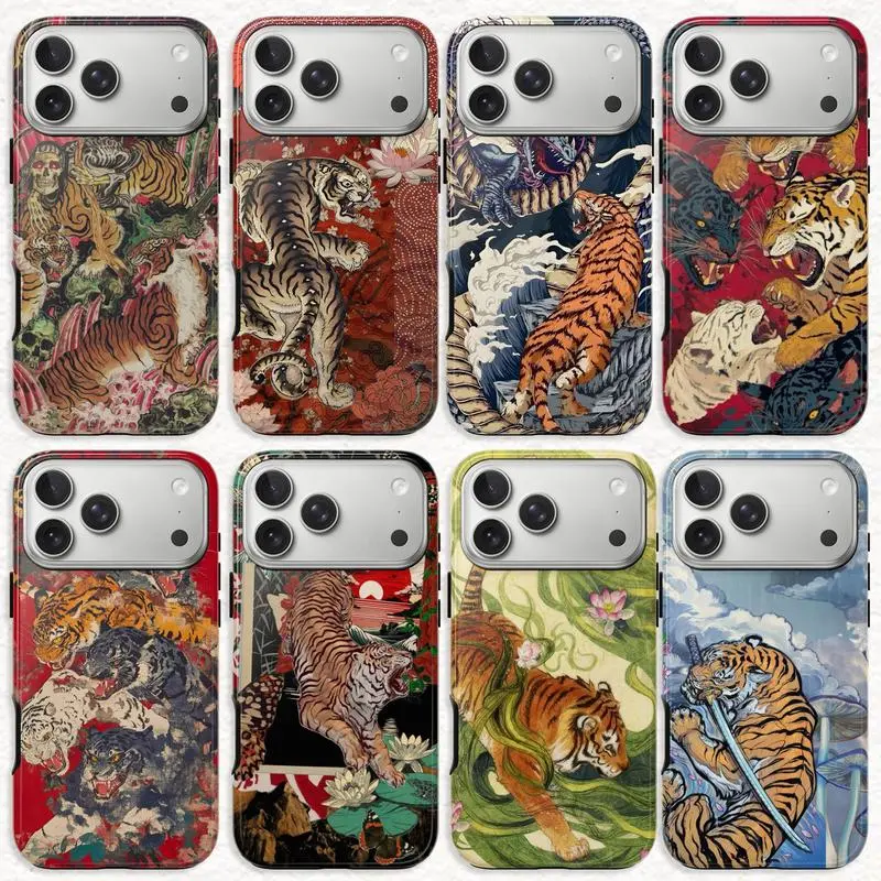 5. Vintage Chinese Tigers Phone Case, Cute Tiger Collage, Japanese Traditional Art Print Big Cat Case iPhone 17 16 15 14 13 12 11 Pro Max
