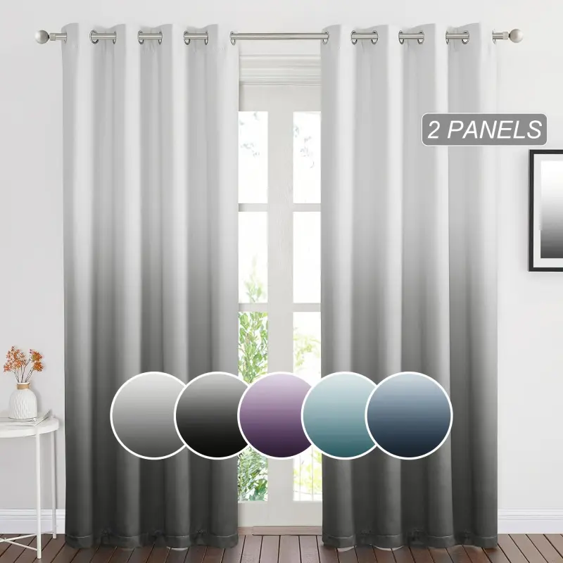 2 Panels Gradient Blackout Curtains, Grommet Thermal Insulated Window Drapes, Noise Reducing Gradient Curtains for Bedroom Living Room, Energy Efficient