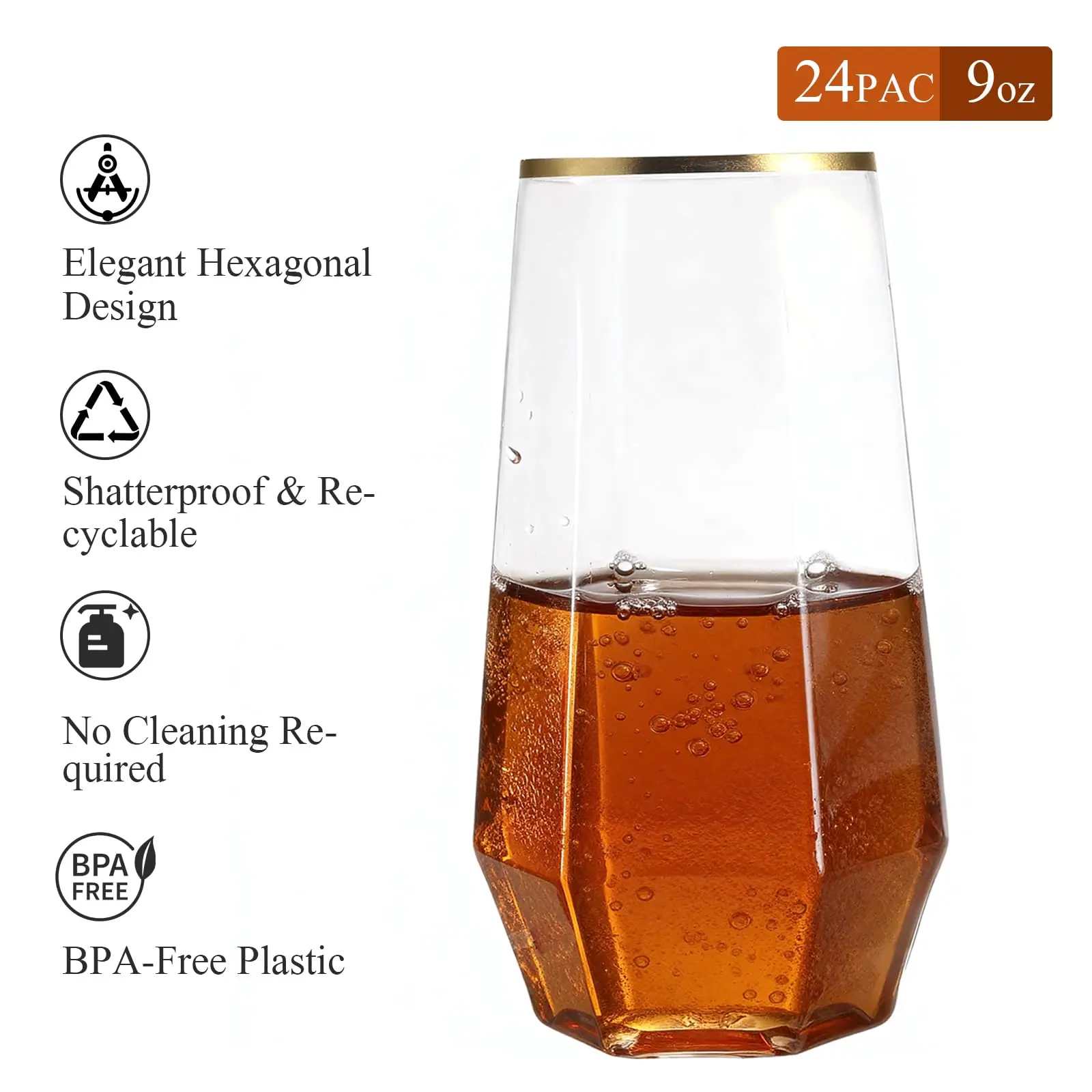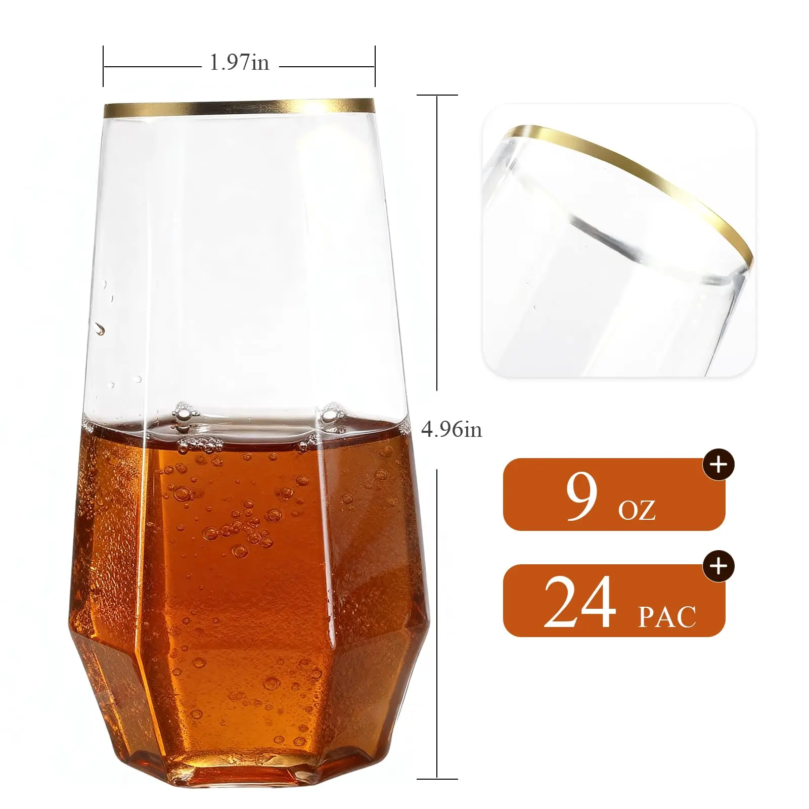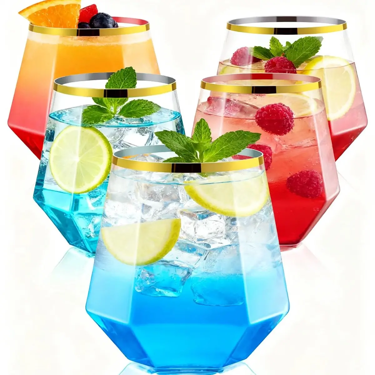 ·Ample 40/48 PCS Pack: Fits Crowded Gatherings: Includes 40/48 clear Diamond Stemless Plastic Wine Whiskey Glasses. As practical disposable wine glasses for parties, they easily meet the needs of weddings, Christmas dinners, birthday banquets, and other large events—no more worrying about insufficient cups.