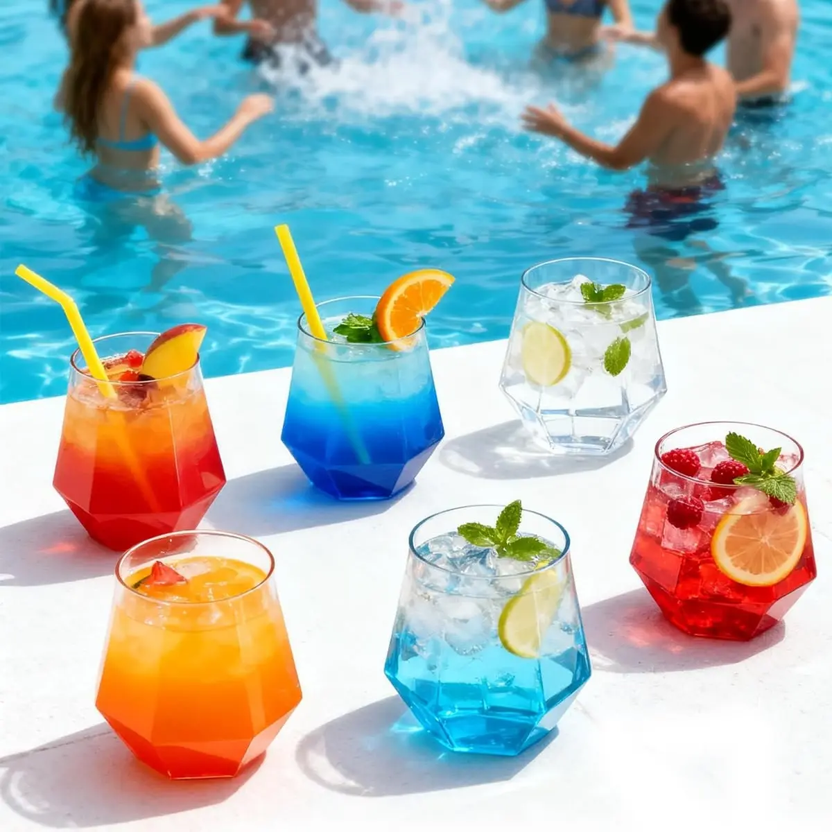 ·Clear Diamond Texture: Simple & Versatile: Transparent body with subtle diamond patterns, bright and timeless. Blends seamlessly with any table setting, suitable for both casual backyard get-togethers and formal wedding receptions, with a stable grip on the cup body.