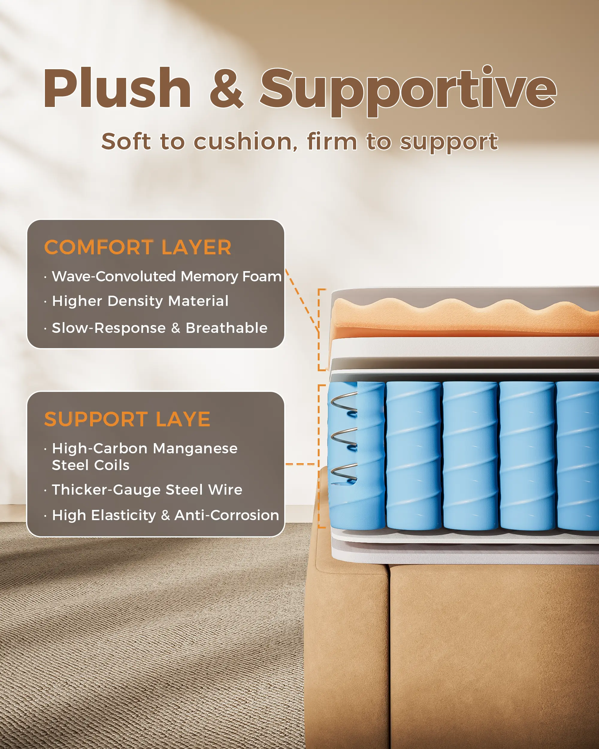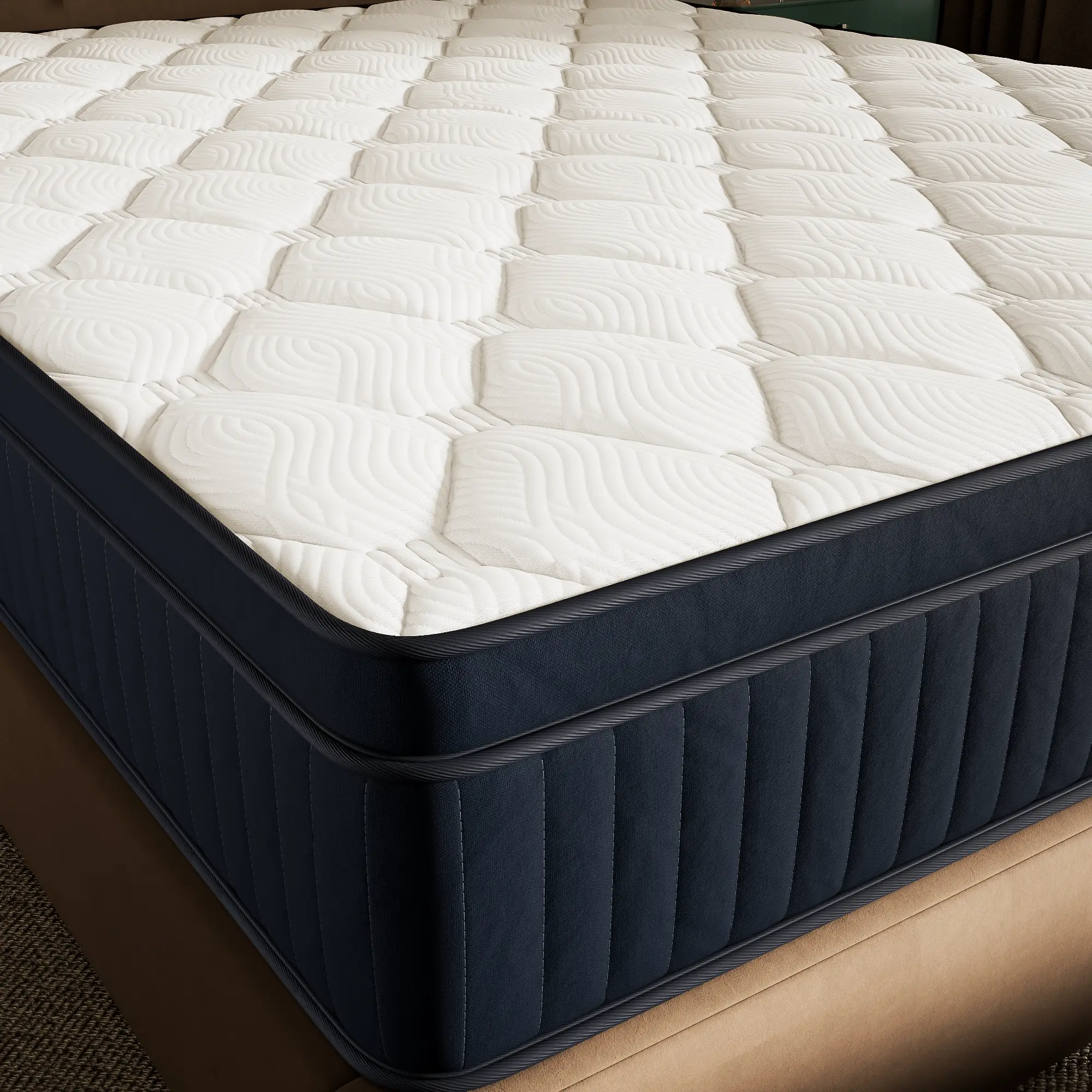 Enhanced Responsive Support - The hybrid mattress uses more elastic materials, with Alloy Steel Material Springs and additional lumbar foam working together to provide stronger support. This helps prevent the hips and lower back from sinking, keeping the spine in proper alignment.(The alloy steel springs offer a longer lifespan and are more resistant to rust.