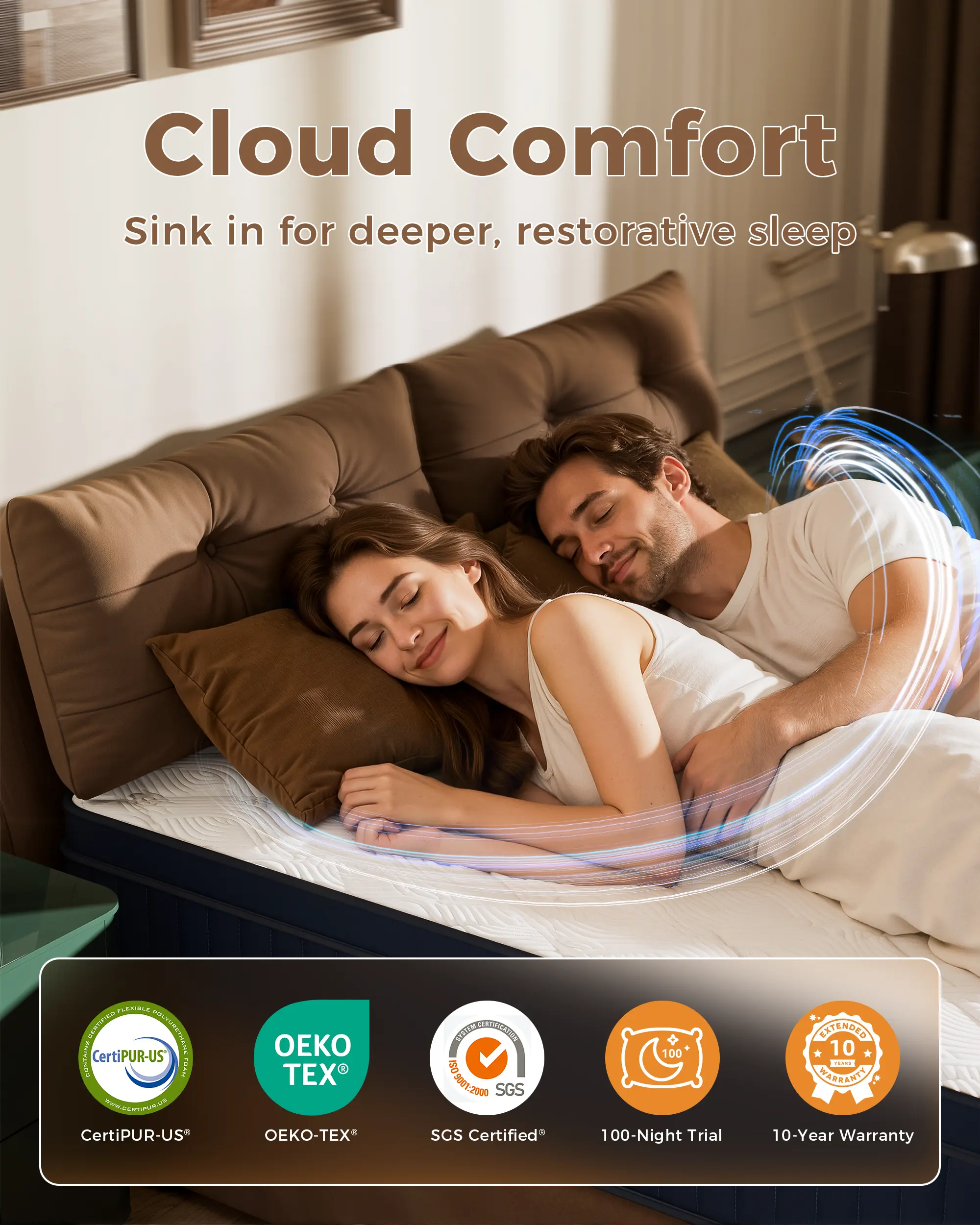 Wake Up Rejuvenated - Elevate your sleep with our medium firm memory foam mattress. The hybrid design ensures temperature regulation, motion isolation, and pressure relief, making it perfect for light sleepers or those sharing the bed with a partner. Say goodbye to tossing and turning.