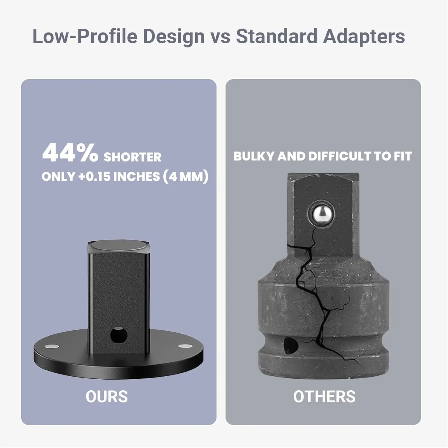 ·4Pcs Precision Socket Adapter Set: This low-profile socket set includes four adapters—1“ to 3/4”, 3/4“ to 1/2”, 1/2“ to 3/8”, and 3/8“ to 1/4”—enabling seamless drive size conversion for diverse job requirements.
