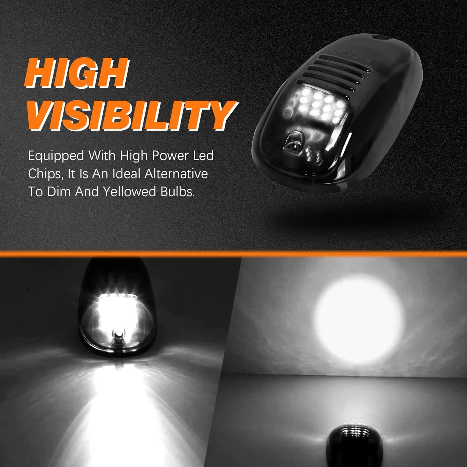 ·【Durable and Sturdy】: LED Roof Cab Lights is made of high-quality and durable ABS plastic housing and sturdy PC lenses. Even after long-term use, the lenses will not fade