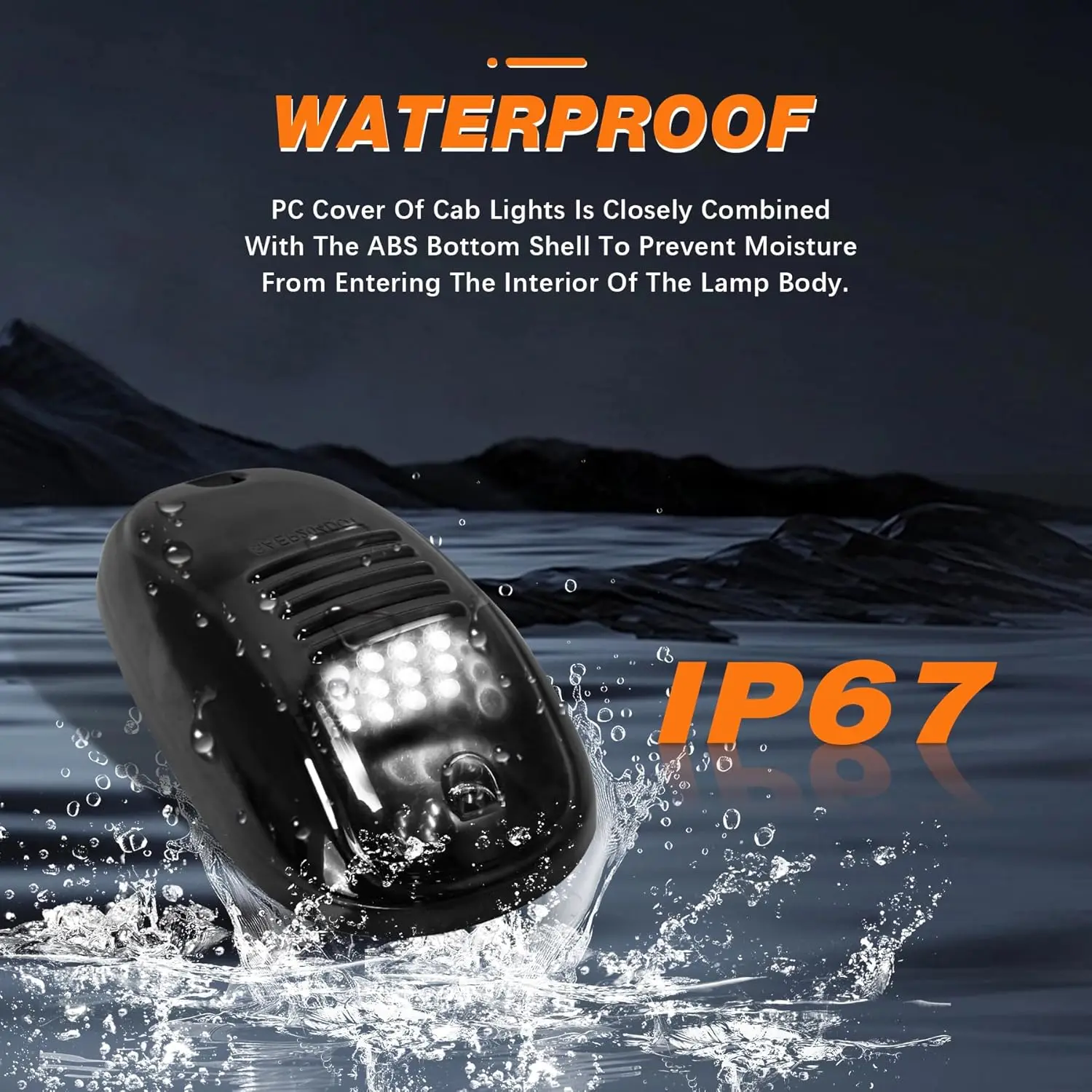 ·【Waterproof Design】: Truck LED Cab Light adopts a fully sealed design, with a waterproof rating reaching IP67. It is very reliable at all times. It can be used normally even in heavy rain, heavy snow and intense sunlight