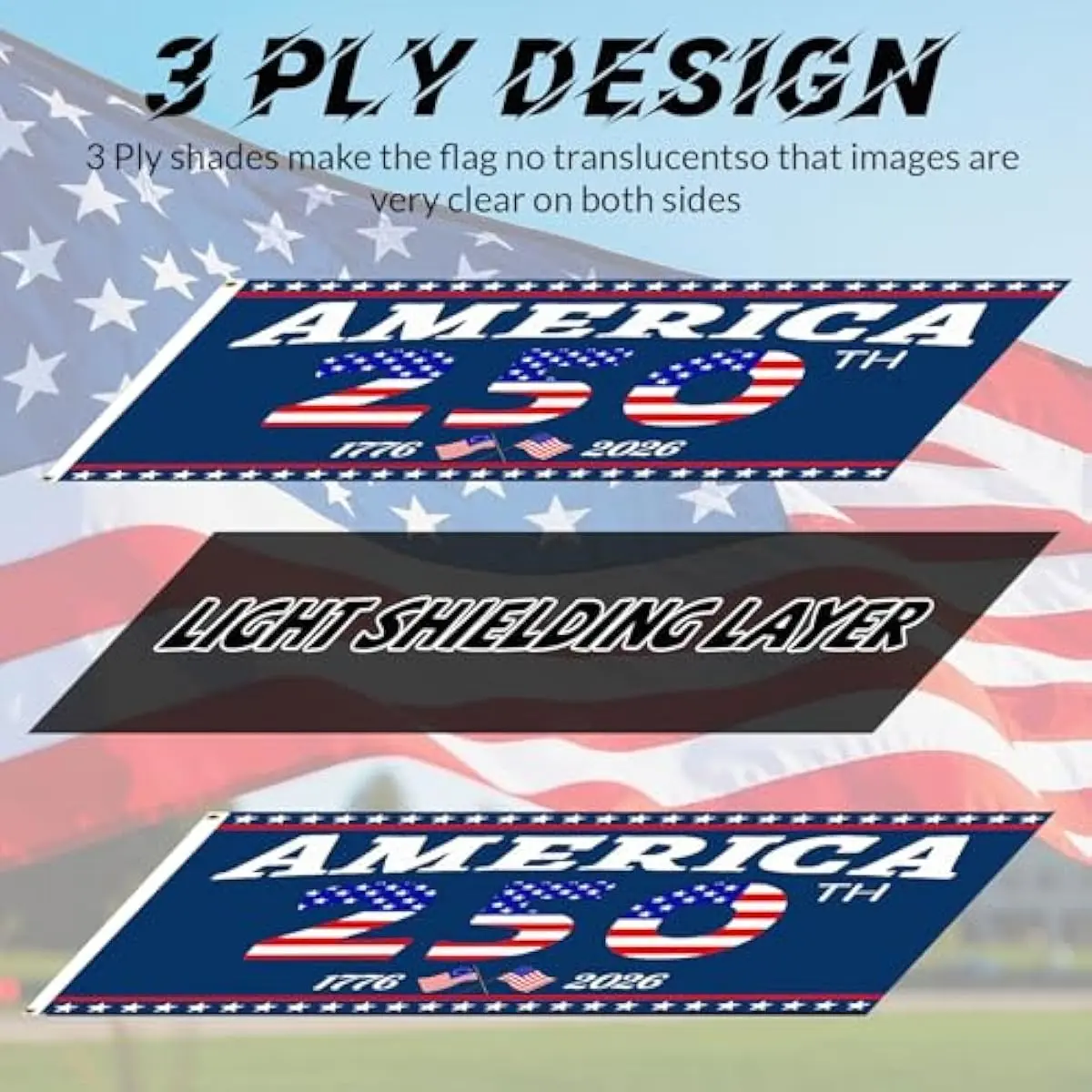 ✨Double the Pride, Zero Confusion:Our flag features adouble-sided print, so the bold 250 and stars shine bright fromboth sides. No more backwards flags on your livestream or in your videos—just pure, legible patriotism from every angle