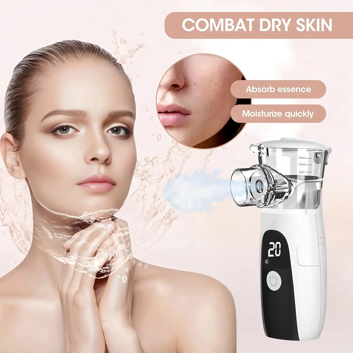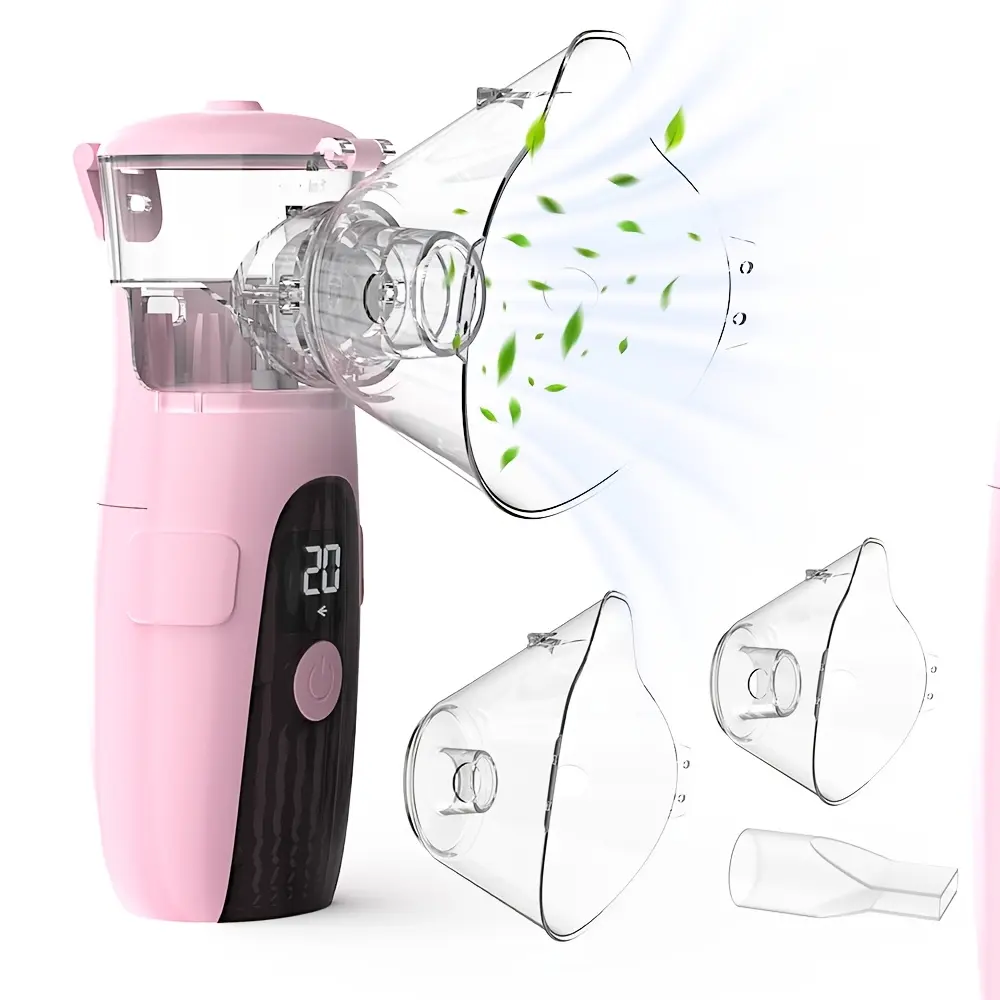 Portable Nebulizer with Self-Cleaning Mode Quiet Operation USB-Powered Rechargeable Hand-Held Smart Mist Steamer for Home Use 5μm Ultra-Fine Mist
