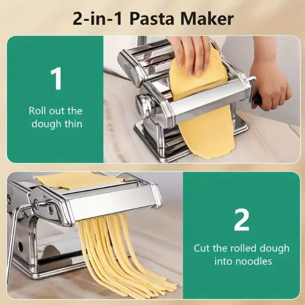 This stainless steel pasta roller and cutter is a must-have for pasta lovers. It features adjustable thickness settings, allowing you to create various pasta types like spaghetti, fettuccine, and lasagna. The dual width noodle maker ensures versatility in your kitchen. Perfect for those who enjoy making pasta from scratch.