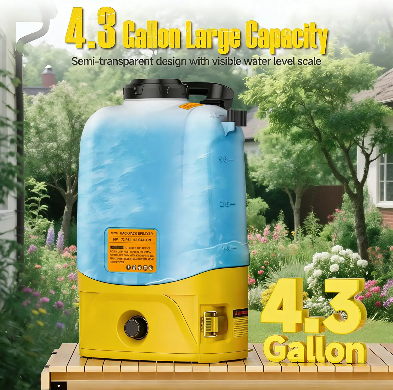 Cordless Battery Powered Electric Backpack Sprayer for Dewalt 20V Max Battery, 4.3 Gallon 73 PSI Adjustable, Weed & Garden Sprayer for Fertilizing, Pest Control & Cleaning, Tool Only