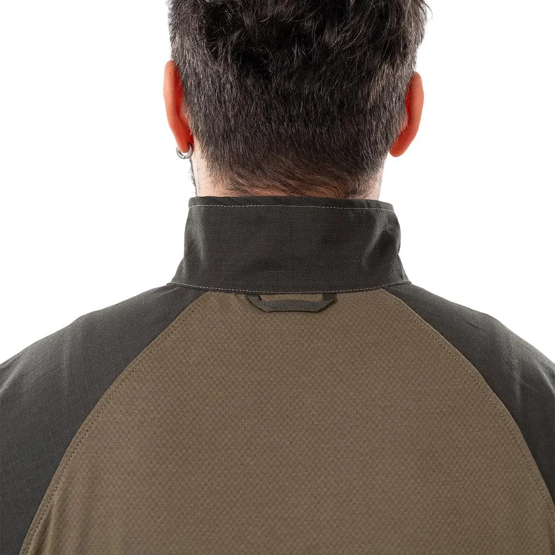 The fabric is water repellent while remaining breathable, helping manage perspiration during movement without trapping heat. Weighing 390 g, the combat shirt maintains a lightweight feel while holding up to regular use. Reinforced stitching is applied in high stress areas to improve durability over time.