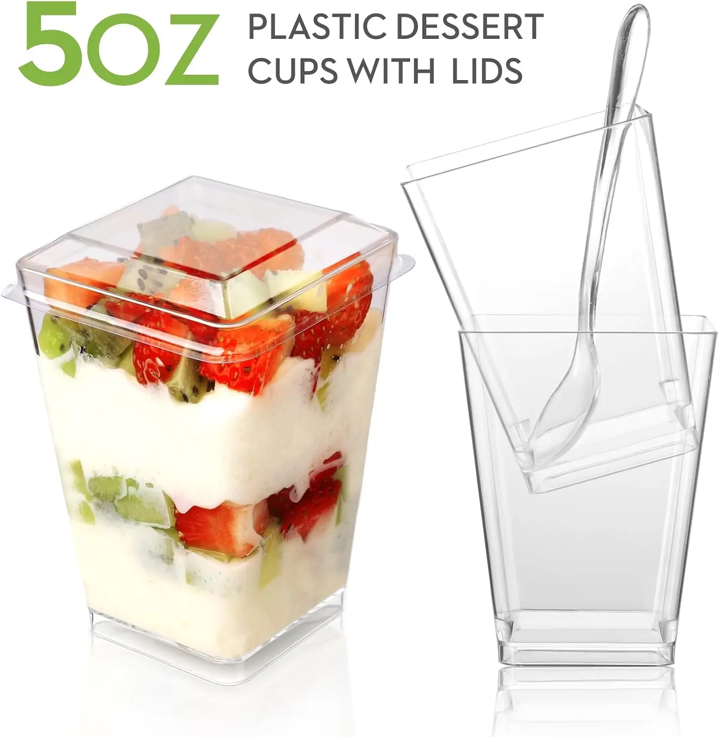 Whether you're hosting a party, organizing an event, or showcasing desserts at a restaurant or retail store, this complete plastic dessert cups set is your perfect choice. Not only does this set fulfill your dessert needs, but it also creates a luxurious and memorable dessert experience.