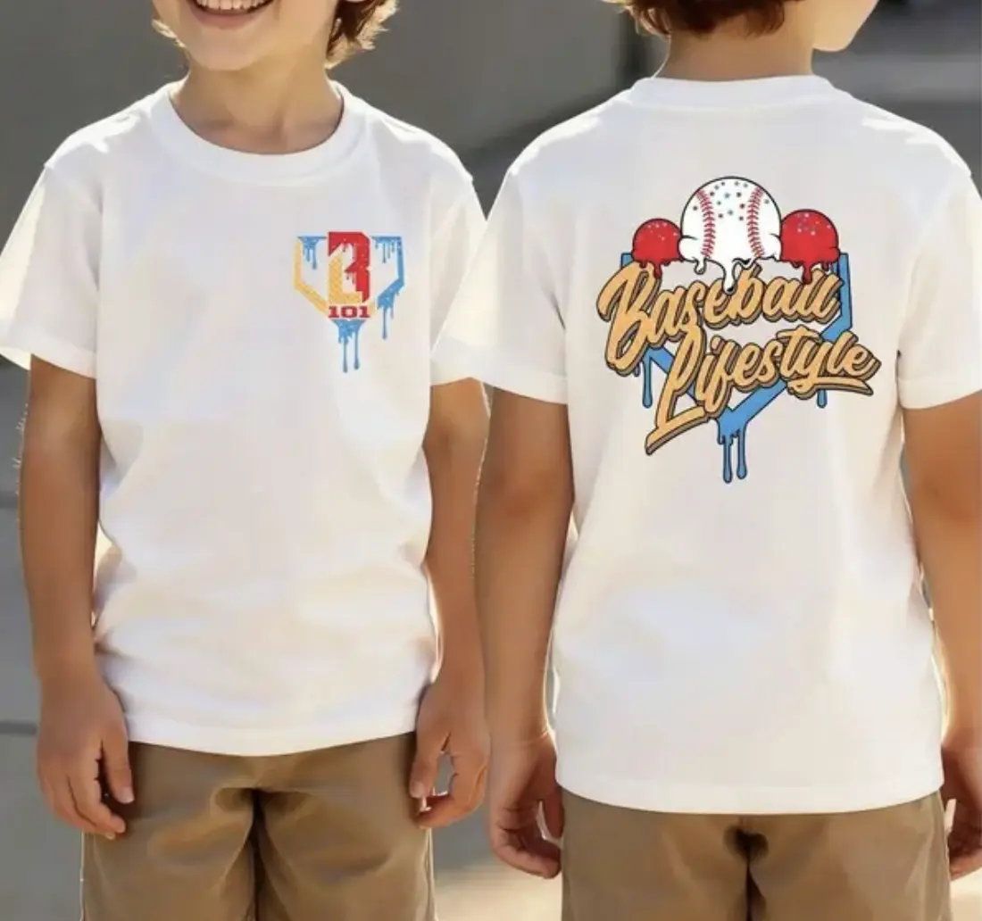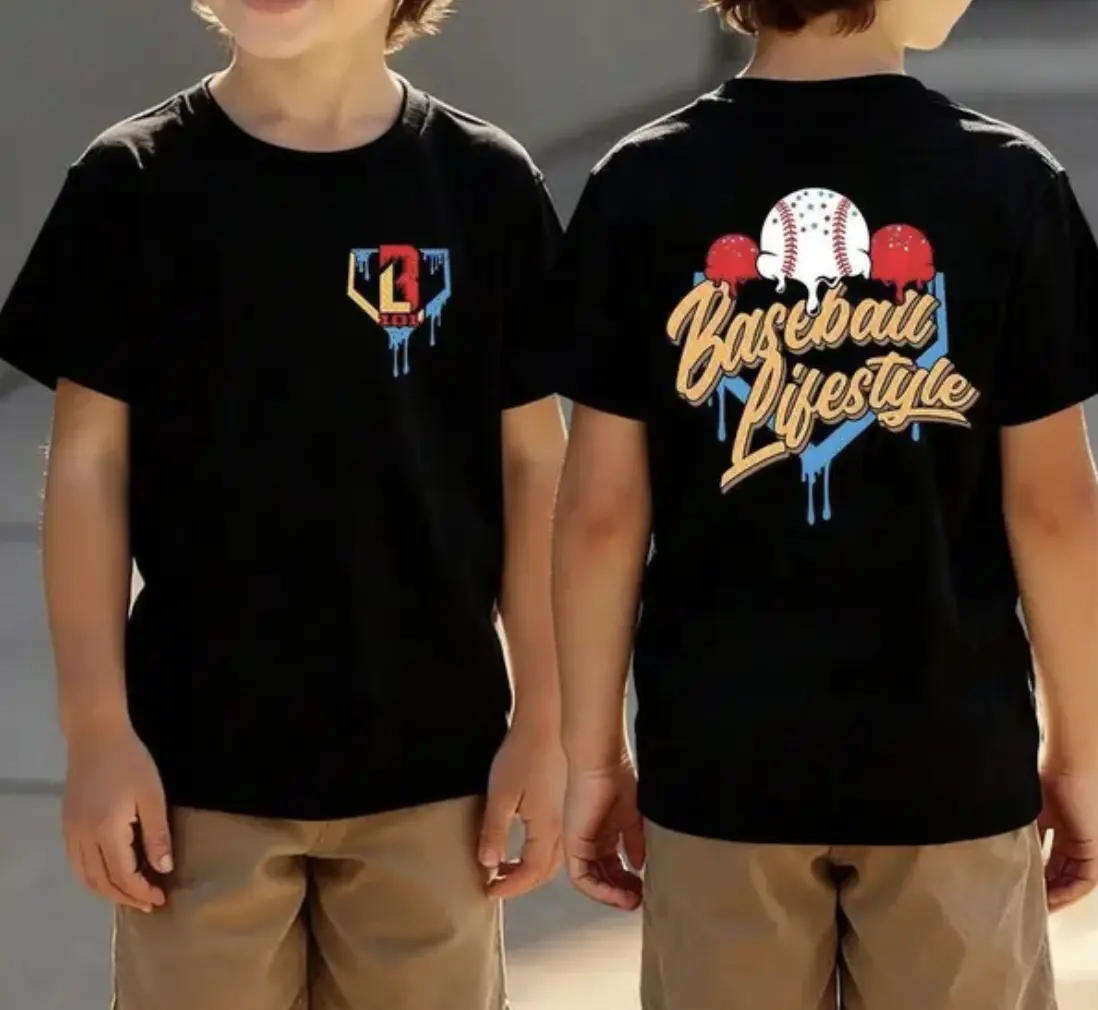 Young Boys' T-Shirts, "Baseball Lifestyle" Baseball Theme Printed Boys' Short-Sleeved Shirt, Round Neck Casual T-Shirt, Suitable For Sports And Leisure Wear, Full Colors, Youth Shirt Available In Sizes XS–XL