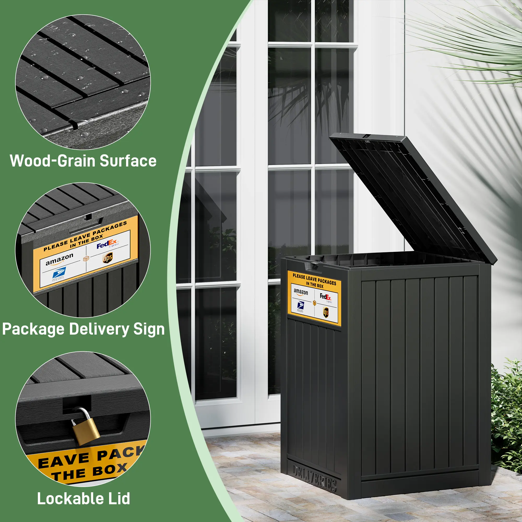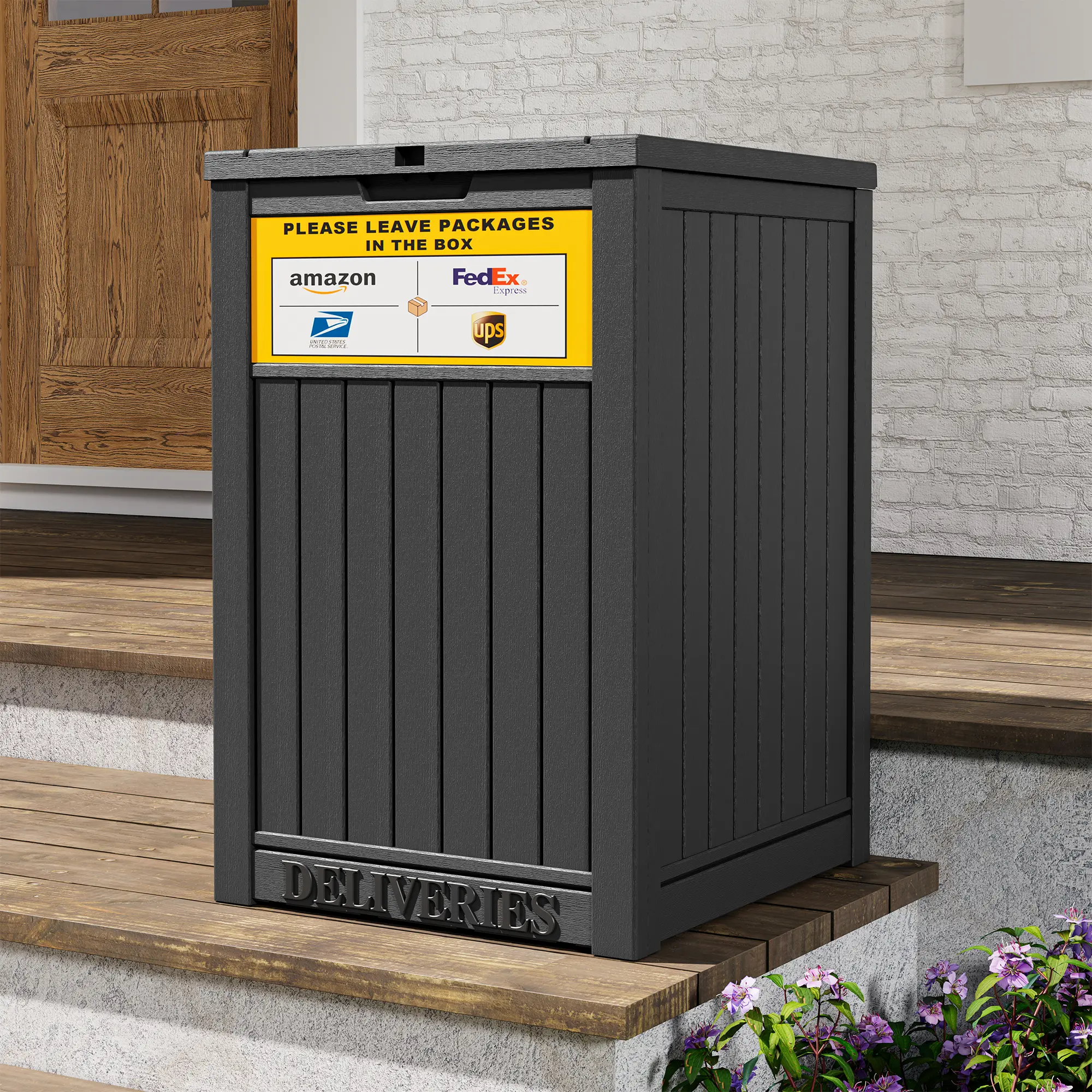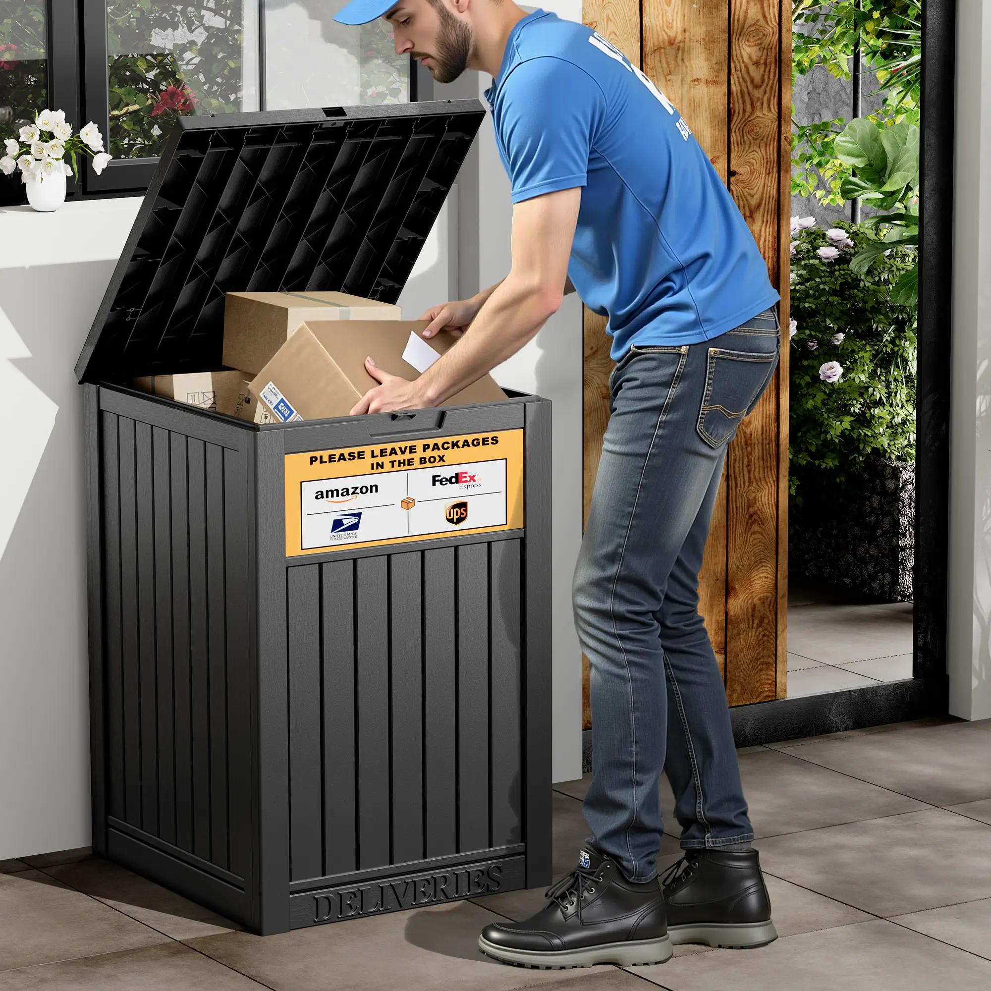 RIWENGO Package Delivery Box for Outside with Sign, 48 Gallon Storage with Lockable Secure, Large Double Wall Resin Outdoor Package Delivery Waterproof Secure Anti