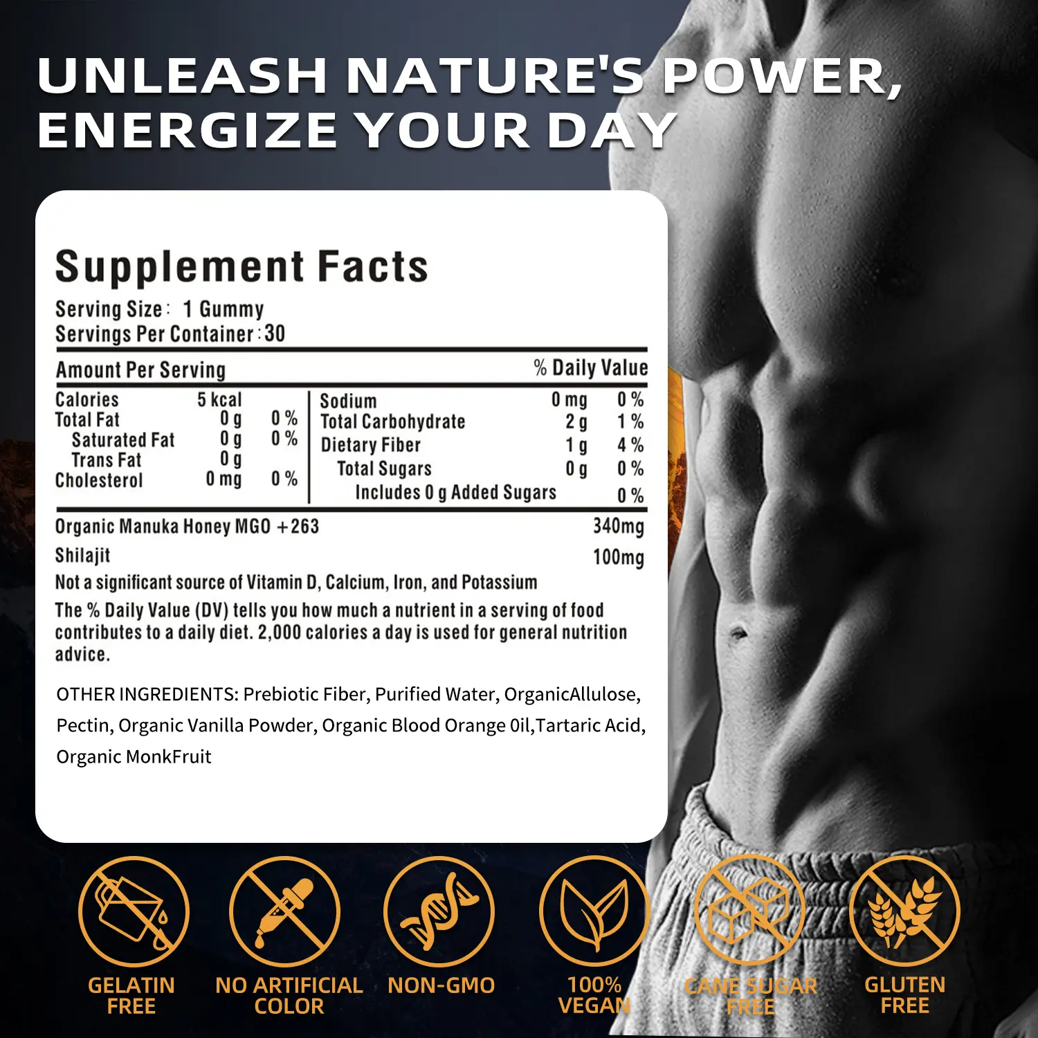 The gummies are infused with organic Manuka honey, known for its health benefits. This natural ingredient supports your energy levels and stamina, making it ideal for active lifestyles. Enjoy the benefits of 100% natural and organic ingredients in every bite.