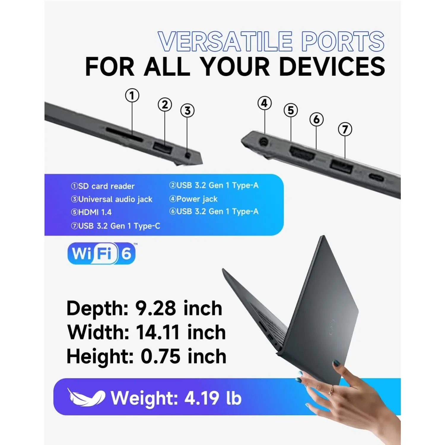 ·💼 Modern Design with Smarter Connectivity The clean, professional look is enhanced by an impressive 85% screen-to-body ratio. Stay connected with Wi-Fi 6 and Bluetooth 5.3, and plug in all your essentials with HDMI, USB-C, USB 3.2 Gen 1 Type-A, USB 2.0, SD card reader, and a headset jack. Everything you need for work or travel—without any compromise.