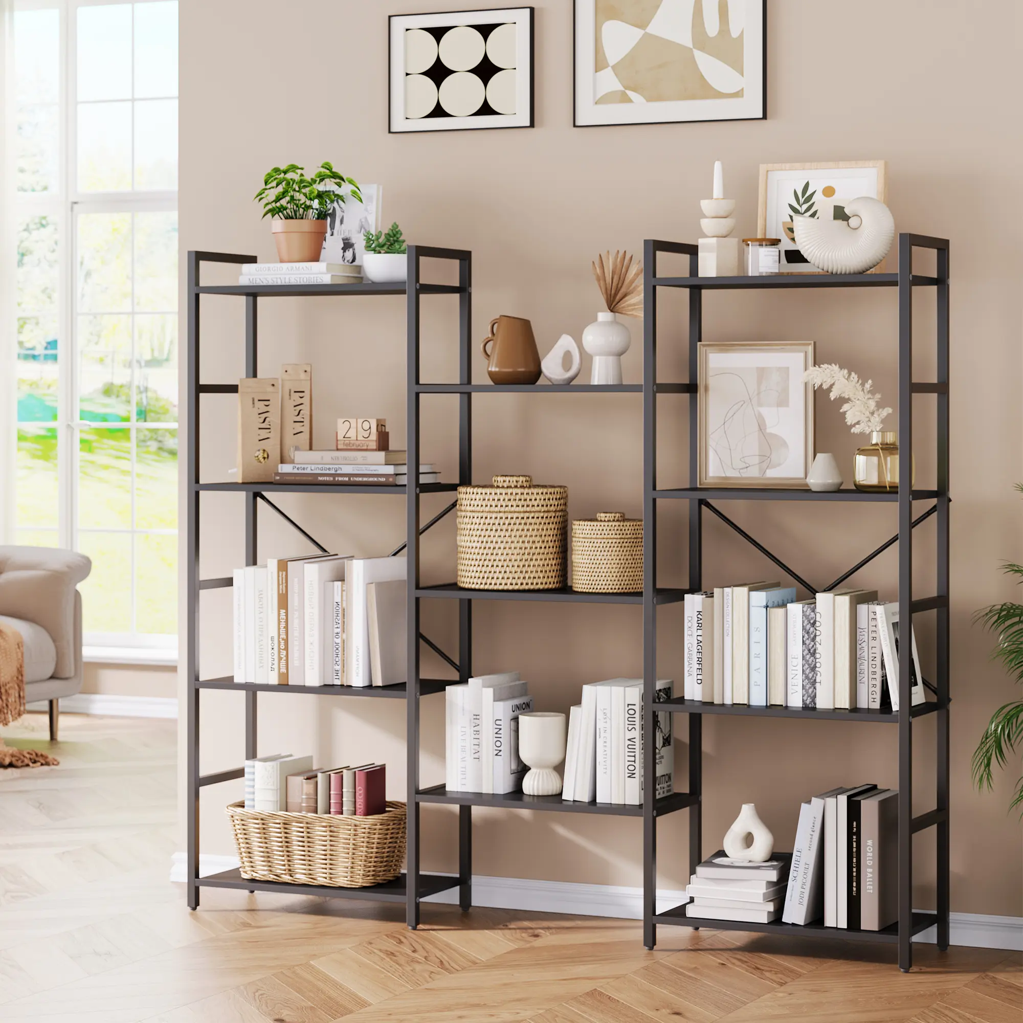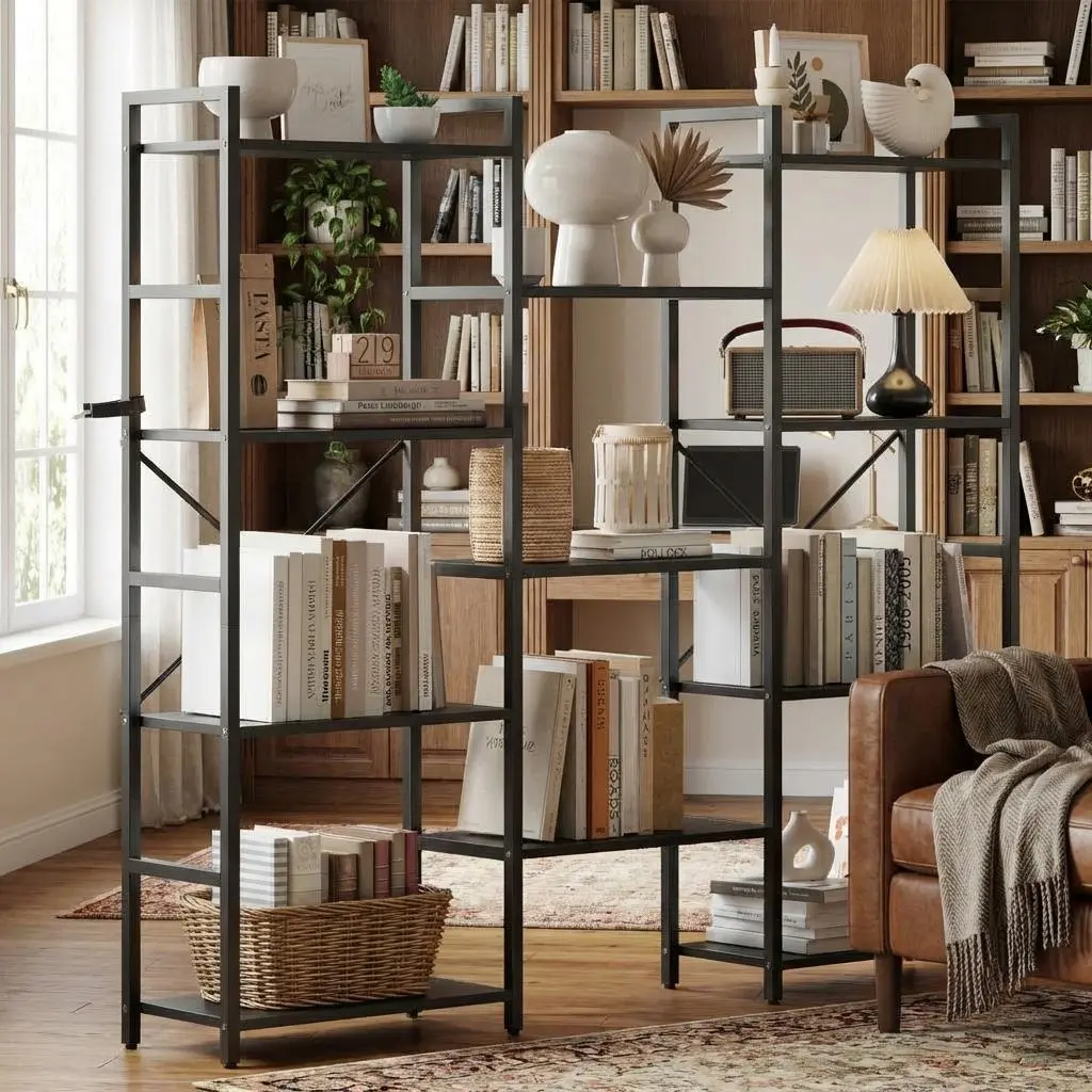 Triple Column Industrial Bookshelf – Heavy-Duty, Adjustable & Modern Storage Solution