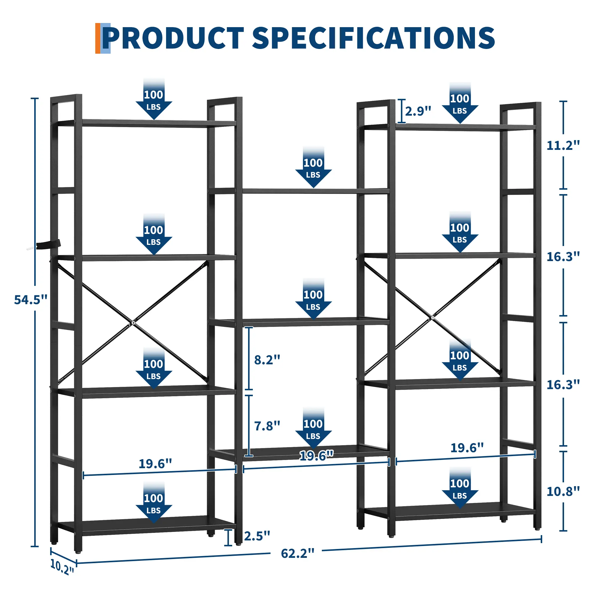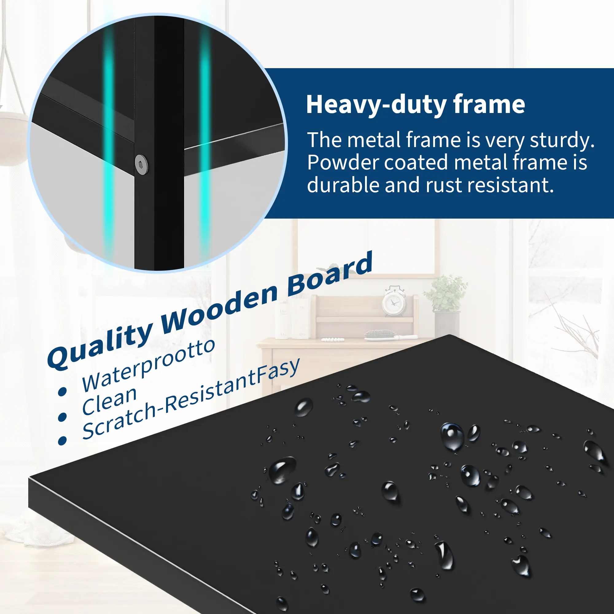 ·Robust Construction: Built with a reinforced metal frame and high-density particle board, each shelf supports up to 100 lbs. The mark-resistant, waterproof shelves and powder-coated steel ensure long-lasting durability and a contemporary industrial look.