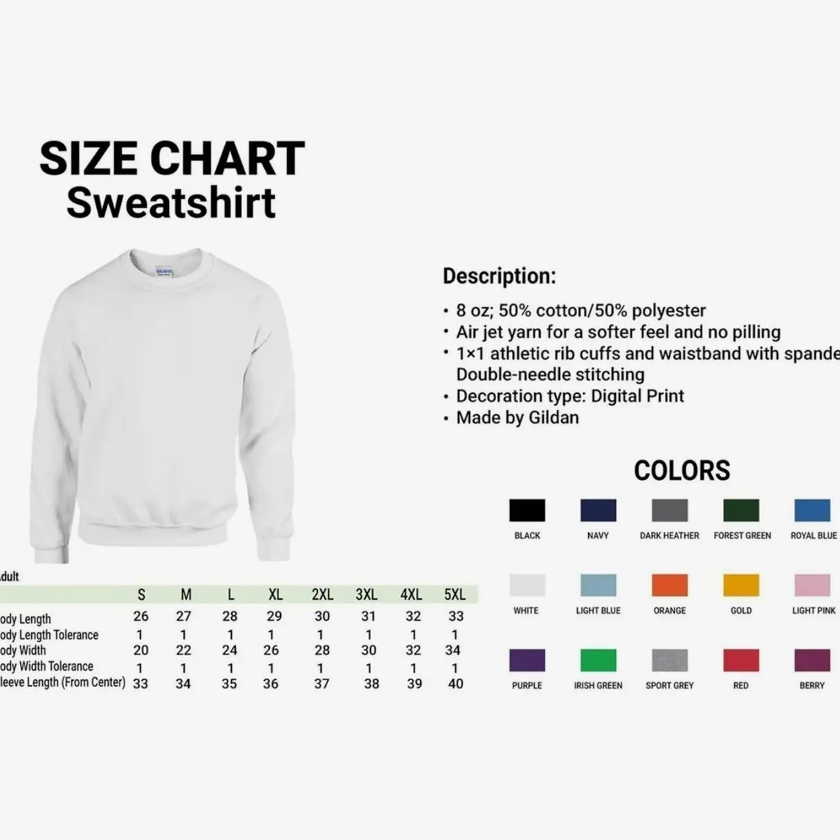 ·Heather Sport colors: 60/40 polyester/cotton