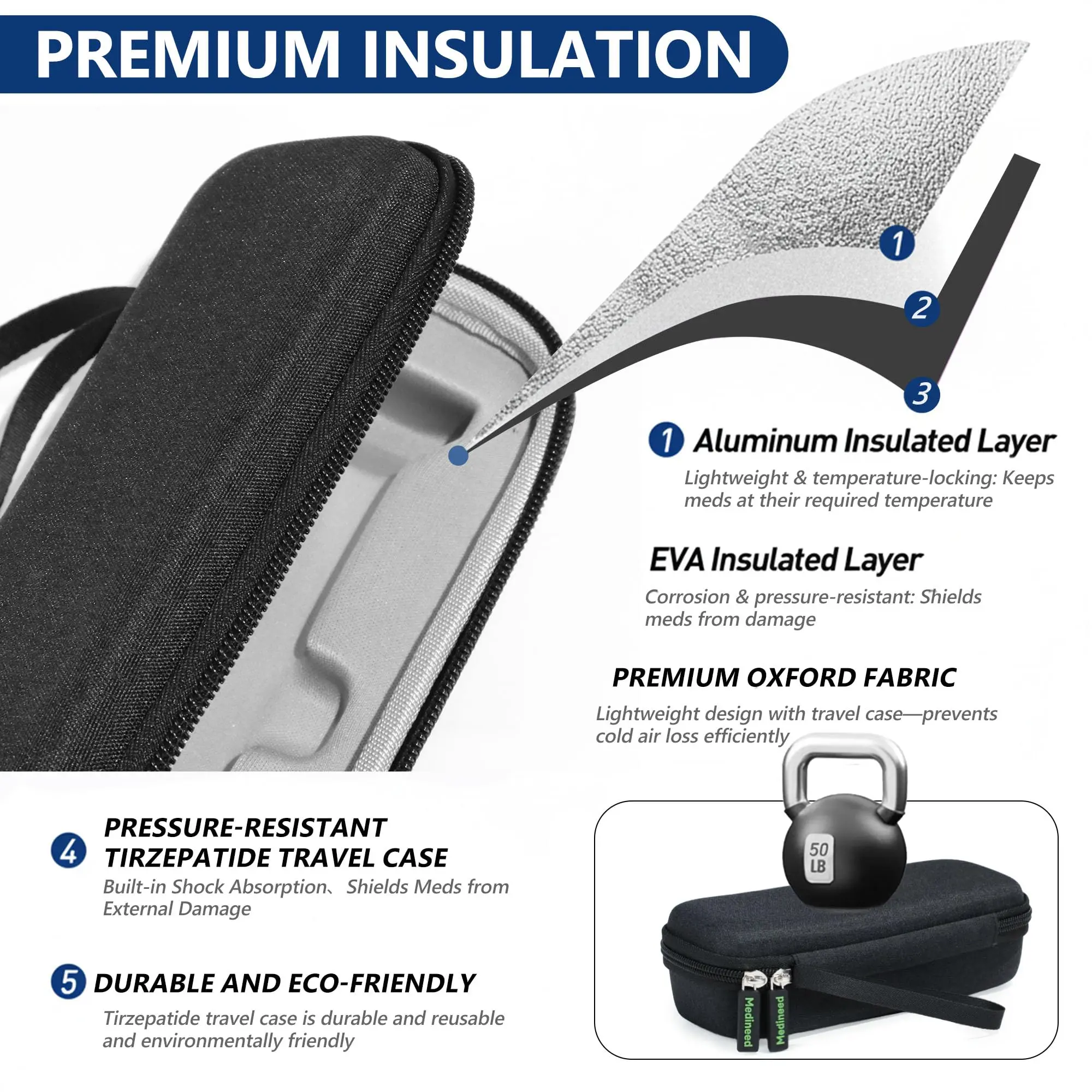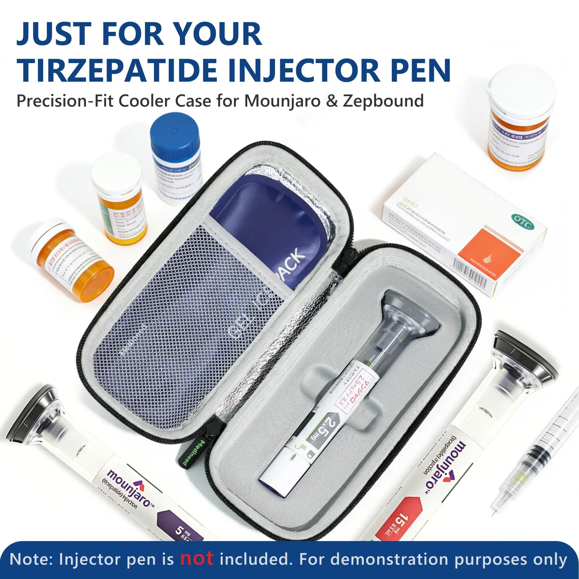 ·[Fit Mounjaro & Zepbound Pens] Custom-molded slots are specifically designed for tirzepatide injector pens, built-in shock-absorbing foam reduces movement and helps protect your medication from drops or damage during daily use or travel