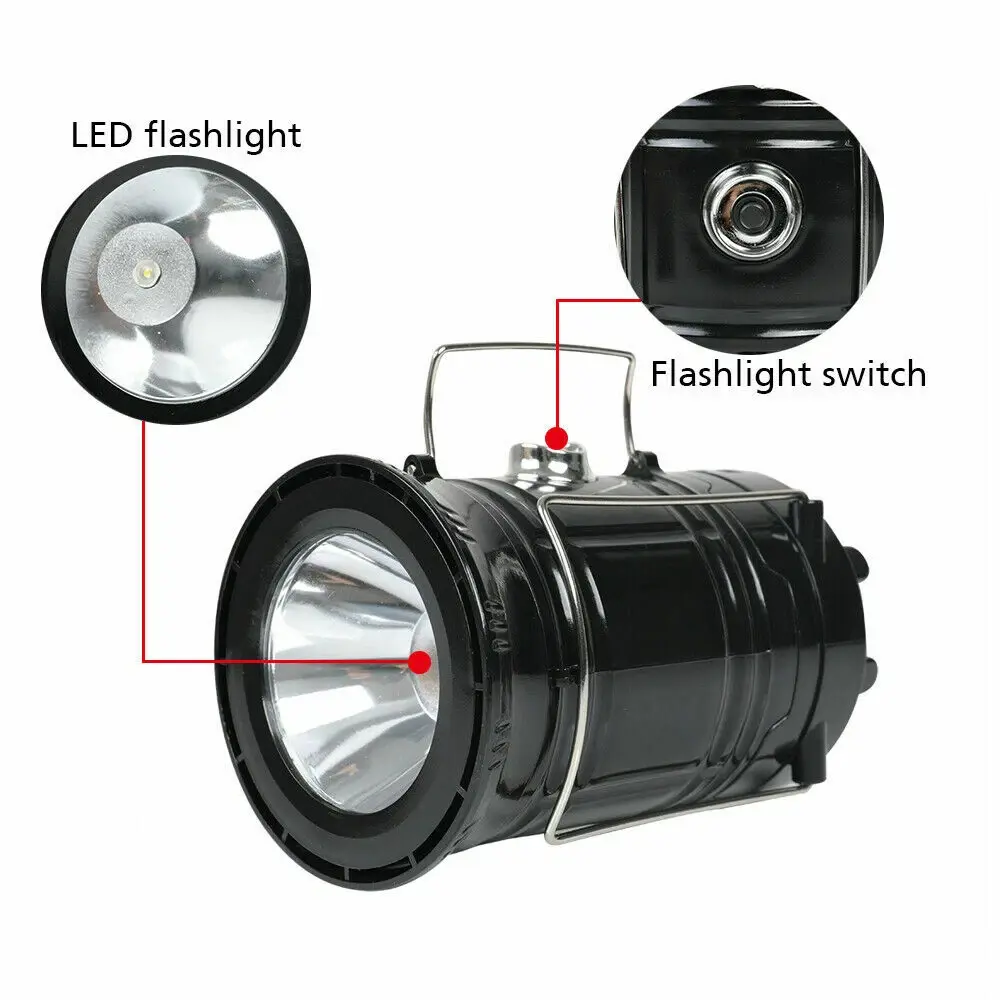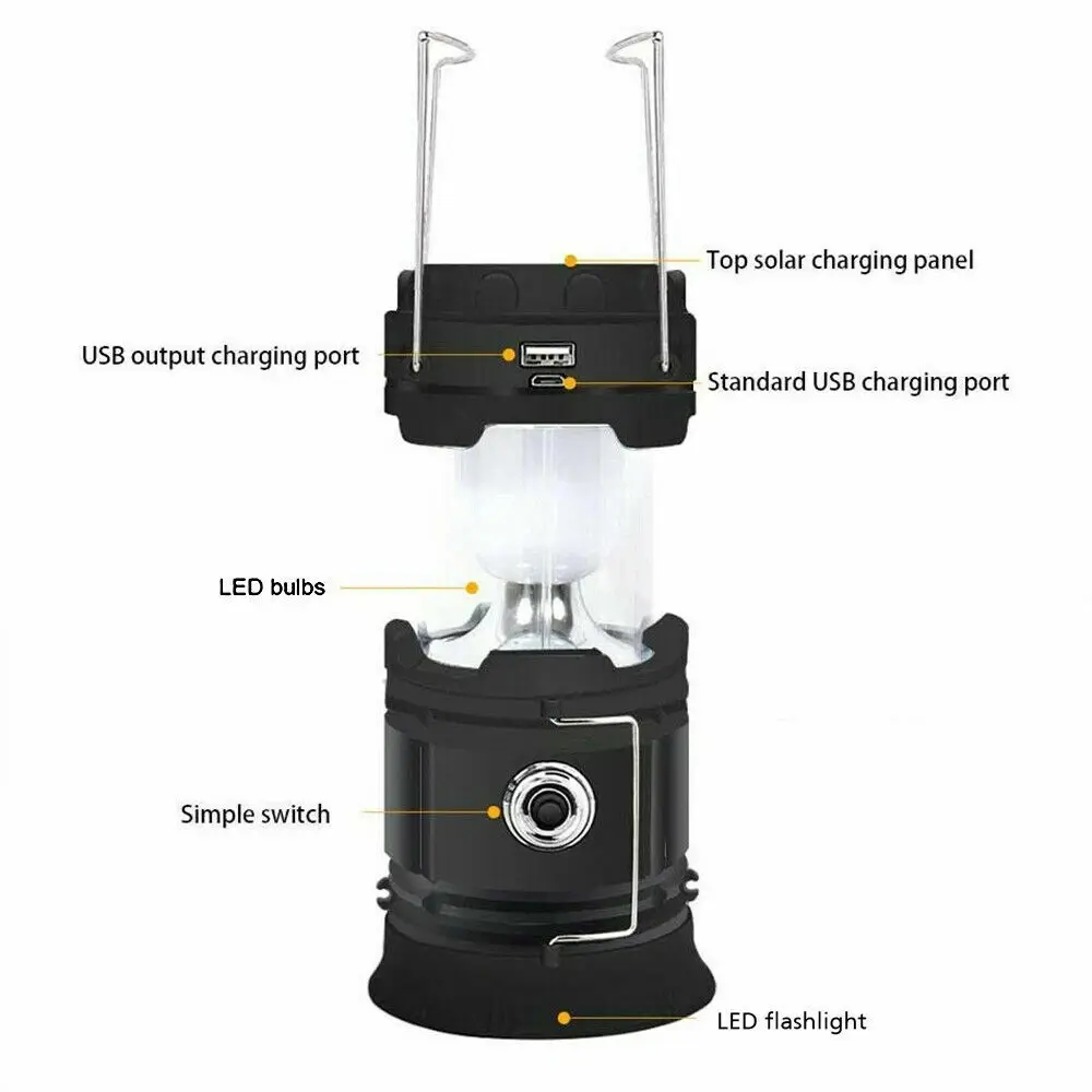 USB Solar Portable LED Flashlight Rechargeable Camping Tent Light Lantern Lamp