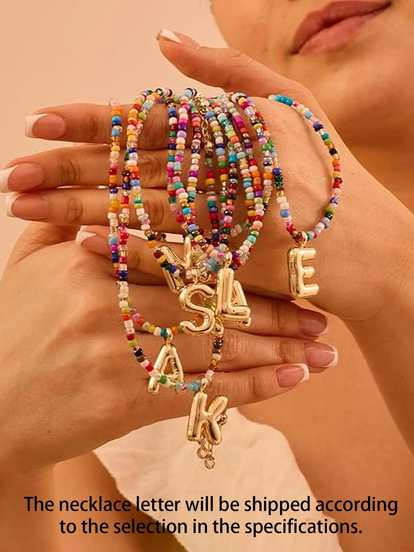 Women's colorful letter necklace, bubble-shaped initial necklace, handmade beaded necklace, exquisite and cute beach Bohemian style necklace, Mother's Day gift, back-to-school season necklace gift, Teacher's Day necklace gift