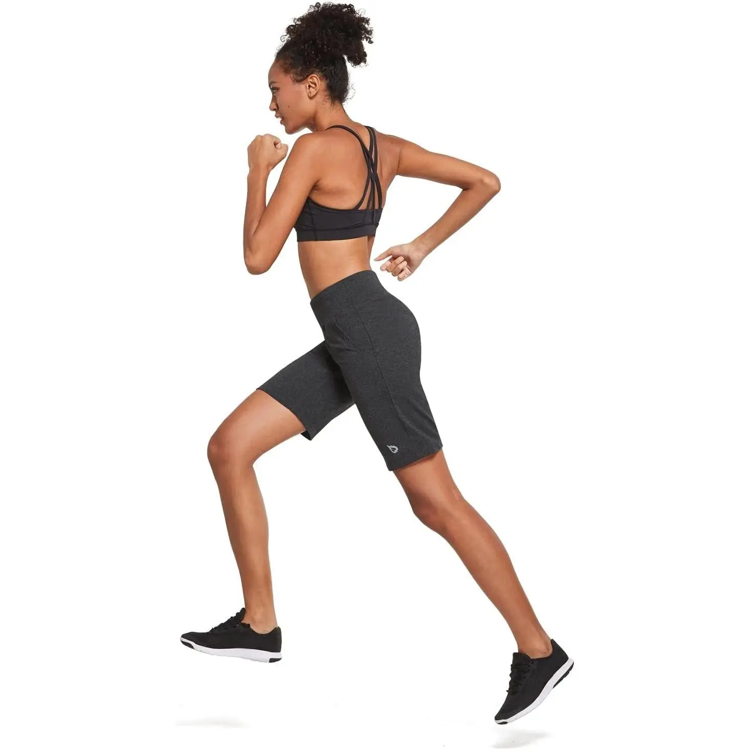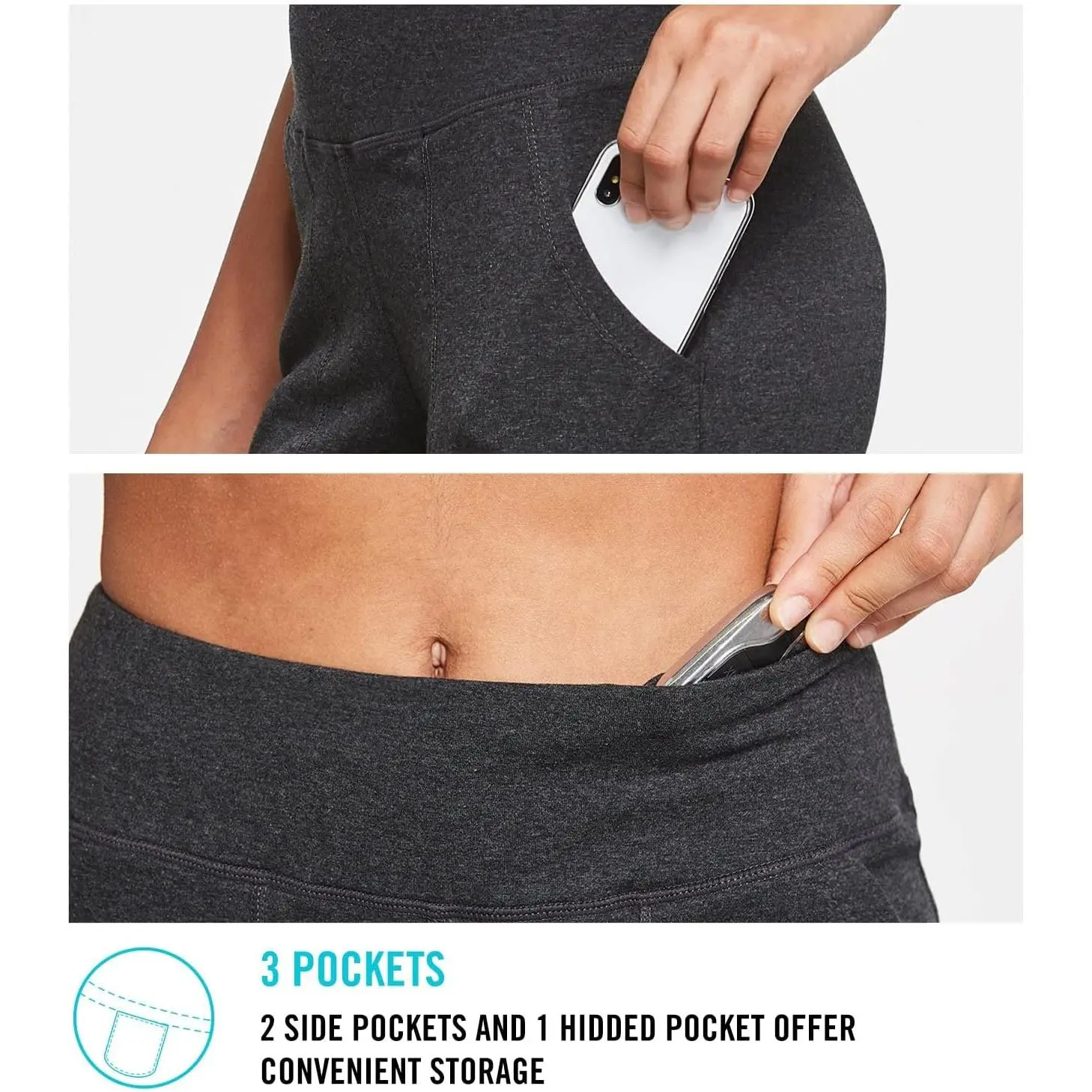 Wide Waistband: 3. 3" high-rise waistband provides tummy control with a soft hand feel 3 Pockets: 2 big hand pockets and 1 hidden pocket inside the waistband hold your valuables like phones, cards, and keys Quick Dry: Soft and stretchy fabric is moisture-wicking yet not see-through. The gusseted crotch allows a great range of motion without chafing Bermuda Long Shorts: The knee length shorts feature a relaxed fit. They are not too tight or baggy and do not ride up to avoid getting thighs rubbed Occasions: Perfect for workout, running, walking, yoga, and lounging in casual summer. If you prefer a loose fit, please order one size up
