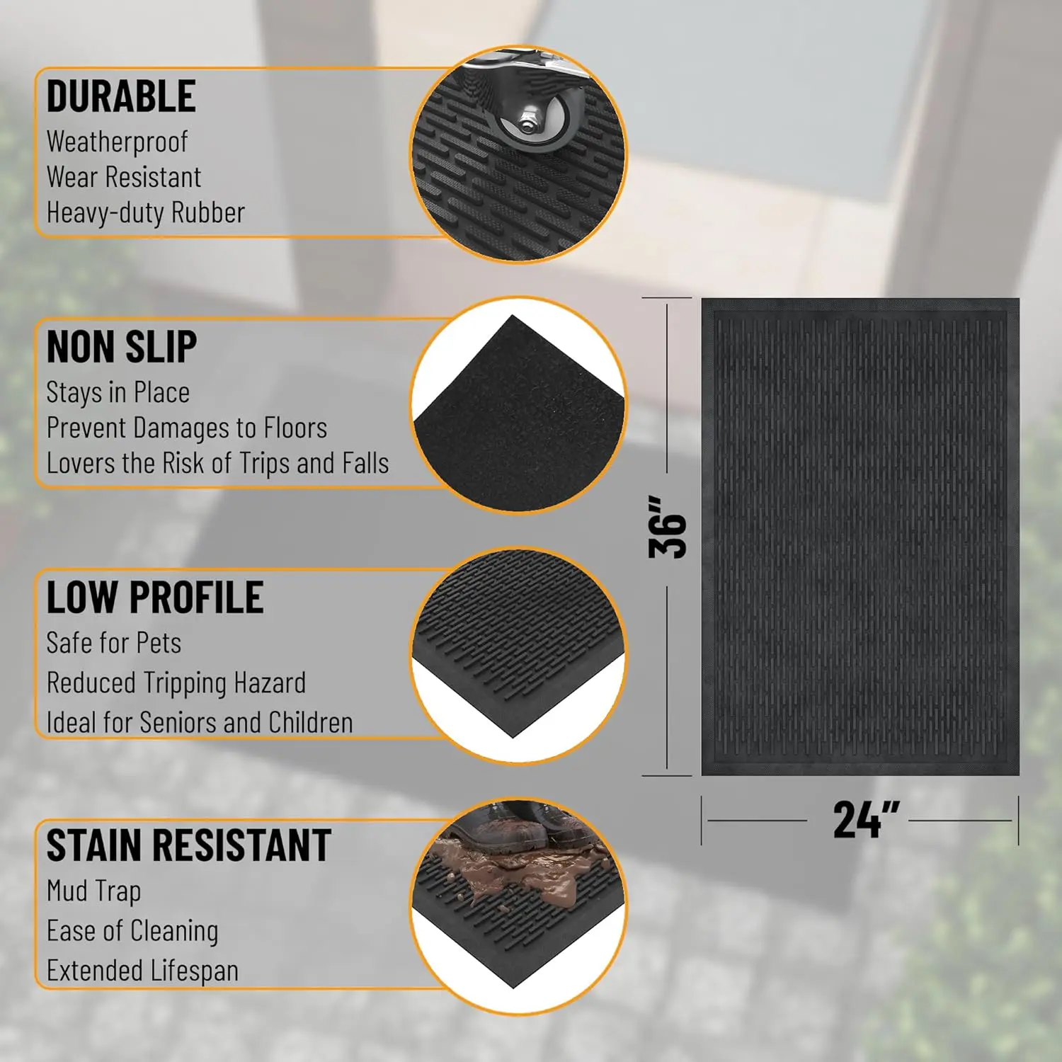 ·[VERSATILE HIGH-TRAFFIC USE]: Suitable for customers searching for garage entry mats, patio mats, or commercial rubber doormats for apartments and rental properties.