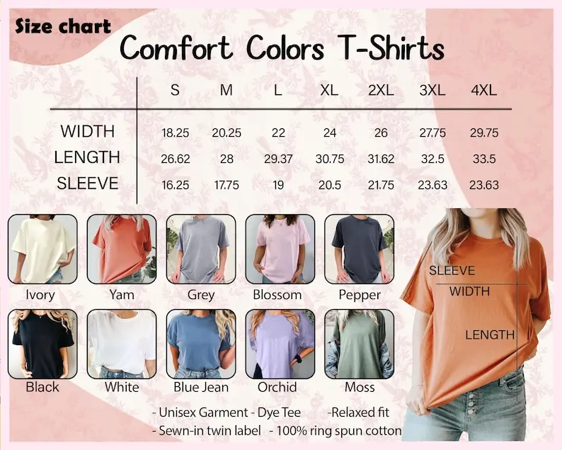 • The Comfort Colors 1717 tee is made with medium fabric (6.1 oz/yd² / 206.8 g/m²) using high-quality, 100% ring-spun U.S. cotton for long-lasting comfort.