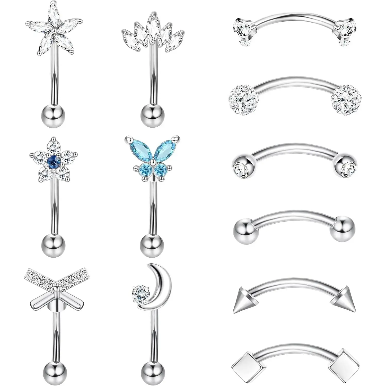 Level up your piercing game with our 12-piece Curved Barbell Set! Whether you're rocking a Rook, Daith, Eyebrow, or Vertical Lip piercing, this dainty and shimmering collection has everything you need to stay trendy and charming.