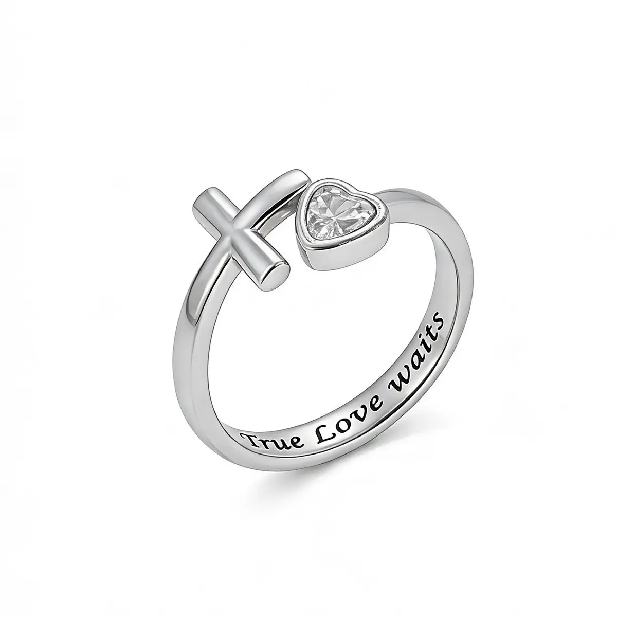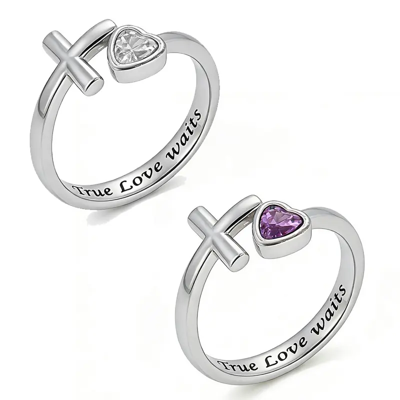 ·Package:2CPS birthstone adjustable heart cross promise finger ring for women comes in a fine gift box with silver polishing cloth, Gift Box Perfect for giving or safe keeping