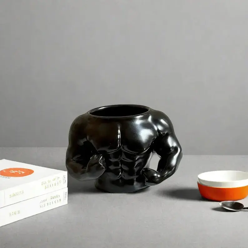 Funny Muscle Man Mug , Ceramic Coffee Cup for Gym Lovers & Fitness Gifts