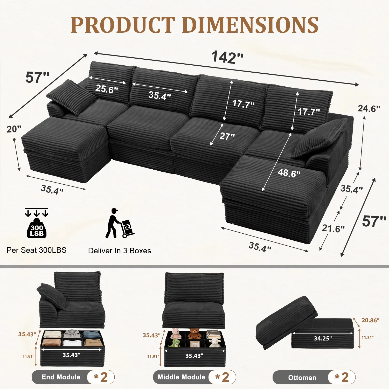 ·HIDDEN STORAGE UNDER EVERY SEAT: Maximize your space without sacrificing style. Unlike standard couches for living room, every single module and ottoman with storage in this set features a spacious, easy-to-access compartment. Instantly stash away blankets, toys, or pillows to keep your home perfectly organized and clutter-free