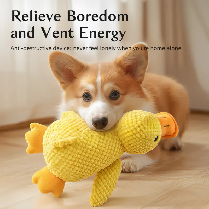 This plush squeaky toy is designed for dogs who need constant mental and physical stimulation.Whether you have a teething puppy, an anxious dog, or a large breed that destroys everything, this toy keeps them engaged for hours.The built-in squeaker triggers natural prey drive, while the textured, durable fabric helps clean teeth and massage gums as they chew.The self-play design means your dog can shake, toss, and gnaw on it alone – perfect for when you’re busy.Made from chew-resistant materials with reinforced stitching, it’s tough enough for aggressive chewers yet soft enough for cuddling.Give your dog the gift of healthy, happy playtime.