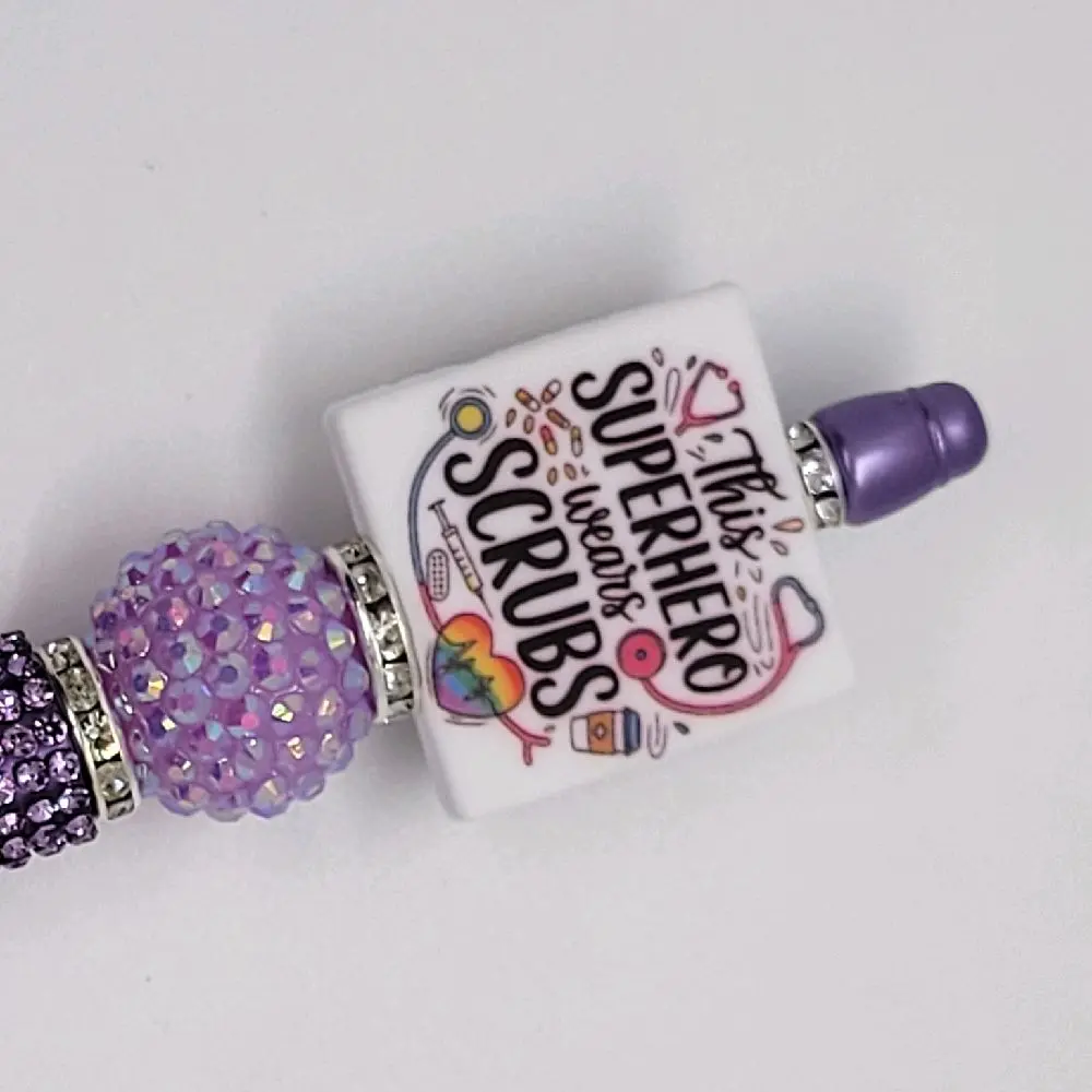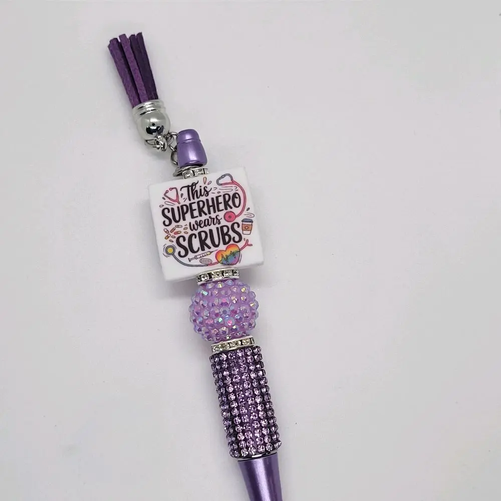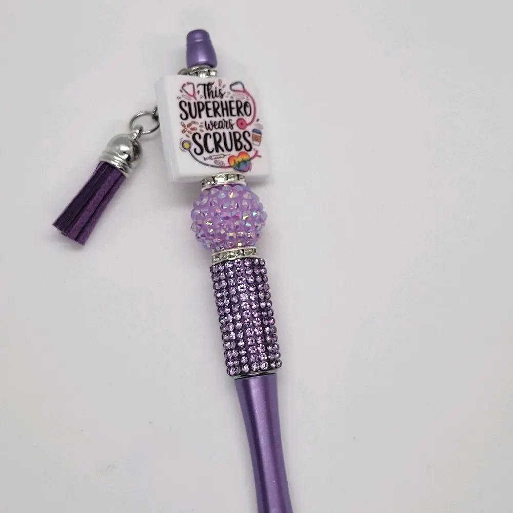 🌟 CharminglyResilient Super Hero Wears Scrubs Purple Refillable Pen for Nurses with Rhinestone Accents 🌟