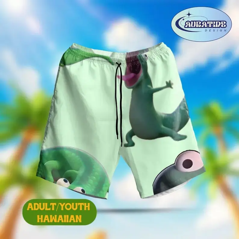 5. Funny Green Chameleon Hawaiian Shirt Shorts Set Adult Youth Men Women Cute Cartoon Lizard Beach Outfit Summer Loose Casual Aloha Matching Tropical Vacation Gift