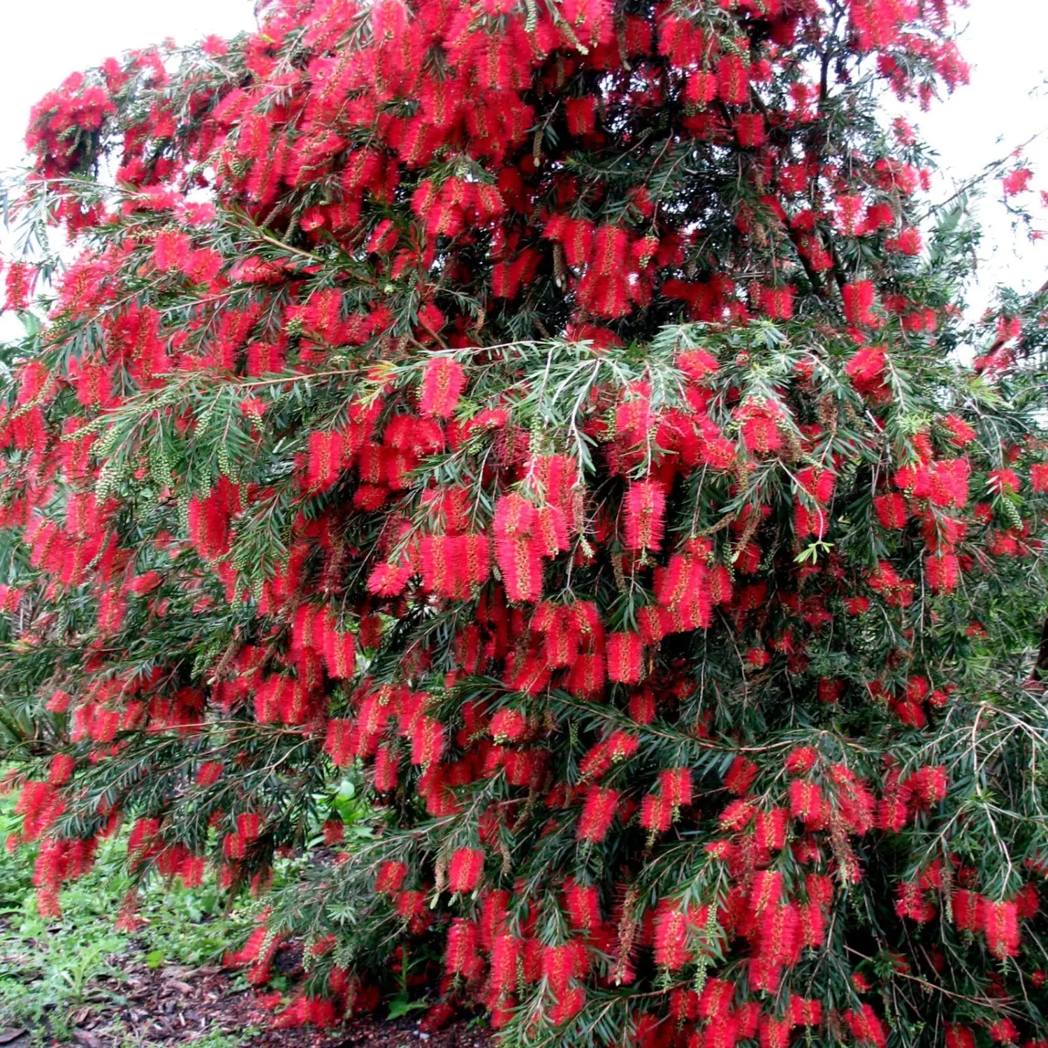 The Weeping Bottlebrush (Callistemon viminalis) is an Attractive Weeping Tree with Slender Flexible Stems, and Showy Flowers Blooming in Late Spring and Early Summer. Flowers are Literally Shaped like a Baby's Bottlebrush, and Attract Bees, Butterflies, and even Hummingbirds. It is a Very Eye-Catching Addition to the Landscape or as a Bonsai. The Weeping Bottlebrush has Scarlet Blooms that Appear March through July; Mature Trees can Grow up to 30 Feet Tall, with a Typical Size 15 to 20 Feet in Height and Spread. The Tree's Narrow, Light Green Leaves Grow at the Ends of the Long, Hanging Branches and Creates a Weeping Appearance. Beautiful for Outdoors Landscaping, or can be Grown Inside as a Gorgeous Bonsai.