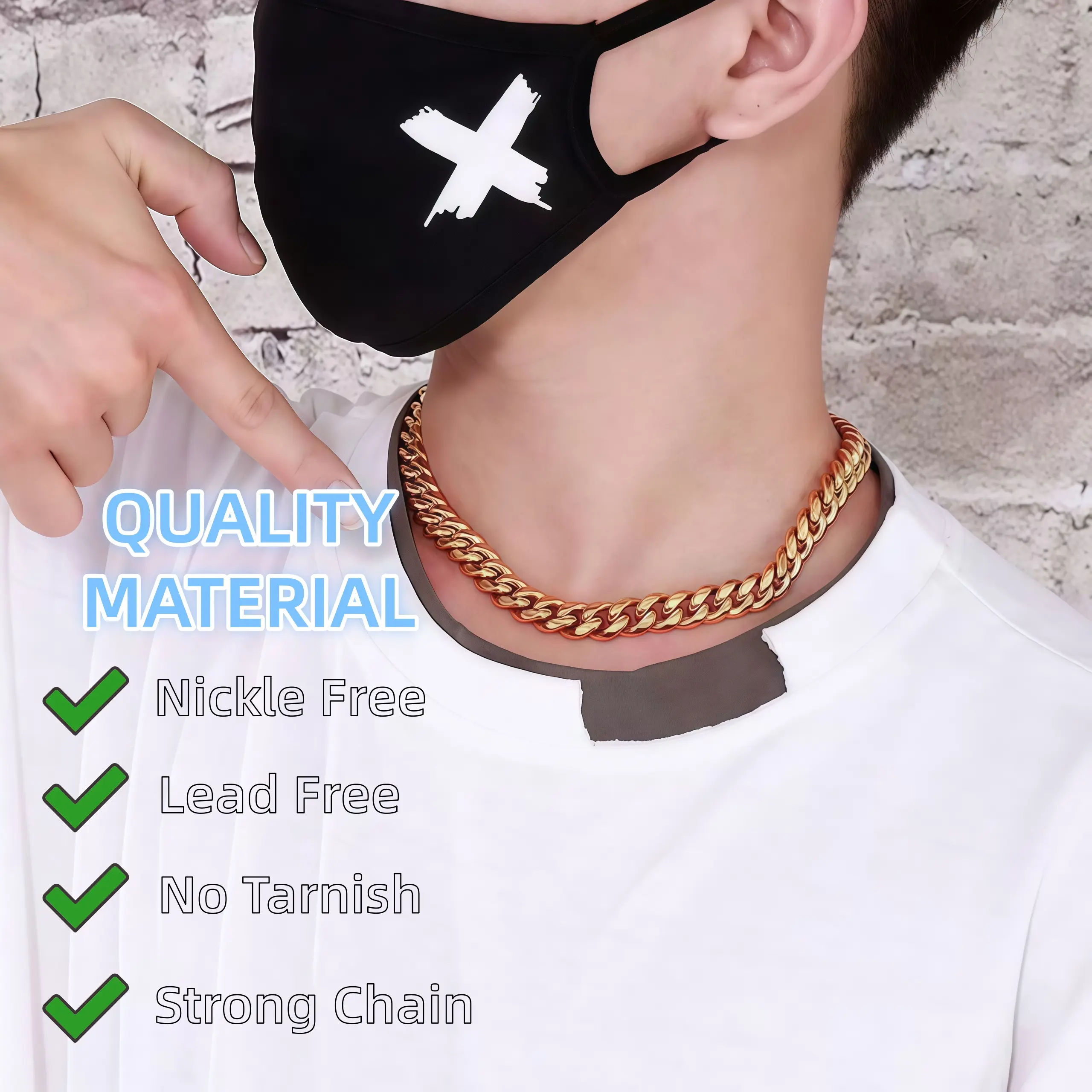 Cuban link chain is made from hypoallergenic 316L stainless steel, delivers superior resistance against tarnishing, sweating, and corrosion. Due to multi-layer polishing and electroplating process., its brilliant shine through daily wear, intense workouts, and even water exposure. This stainless steel necklace is the smartest investment for men who demand durability without breaking the bank.