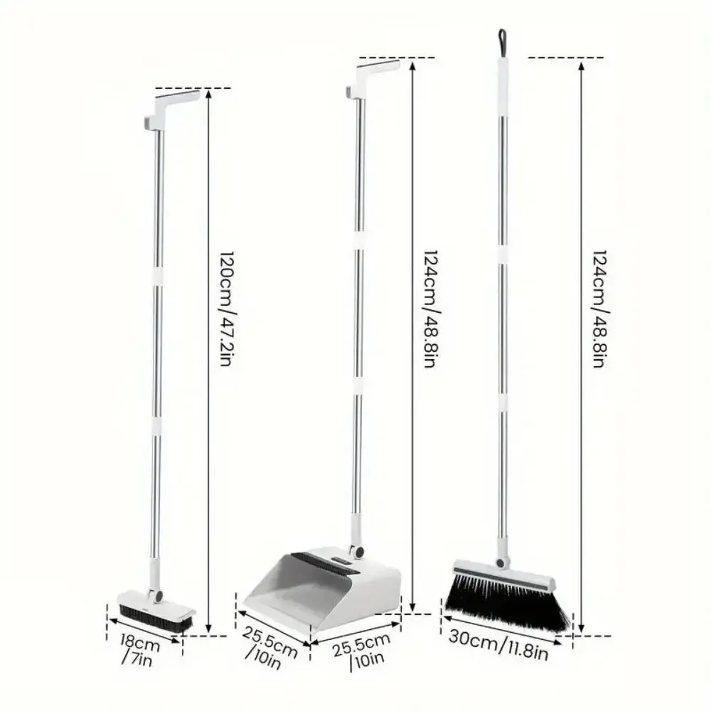 [3-in-1 Functionality]: This cleaning kit combines a soft bristle broom, dustpan, and brush, providing comprehensive cleaning solutions in one set.