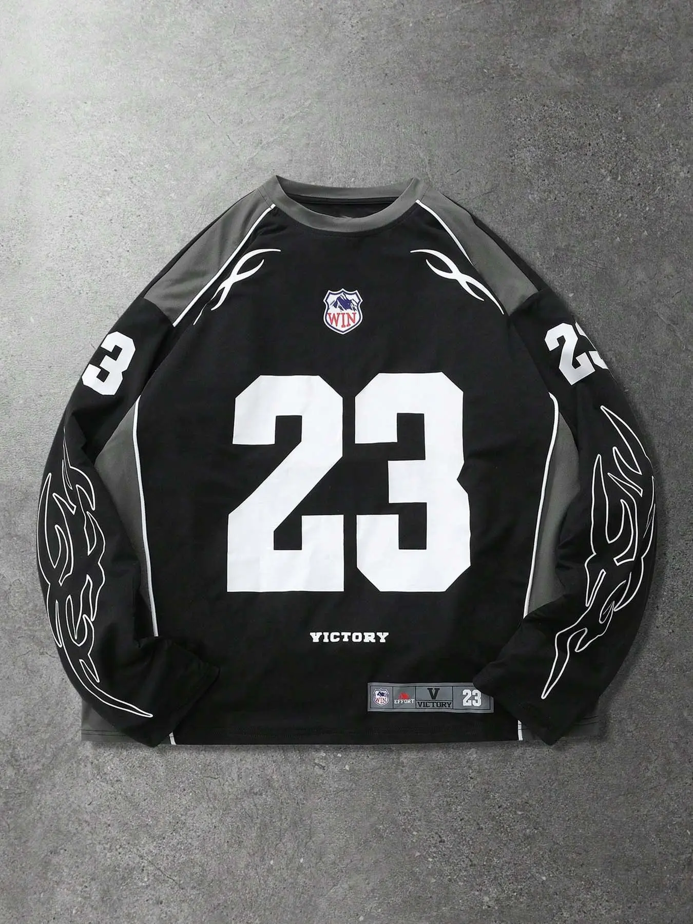 tiktokshopspringglowup Y2K Flame 23 Jersey Long Sleeve Shirt, Vintage Streetwear Oversized Sports Top, Retro 90s Grunge Blokecore Tee, Casual Hip Hop Graphic Jersey for Men/Women, Street Style 2000s Aesthetic