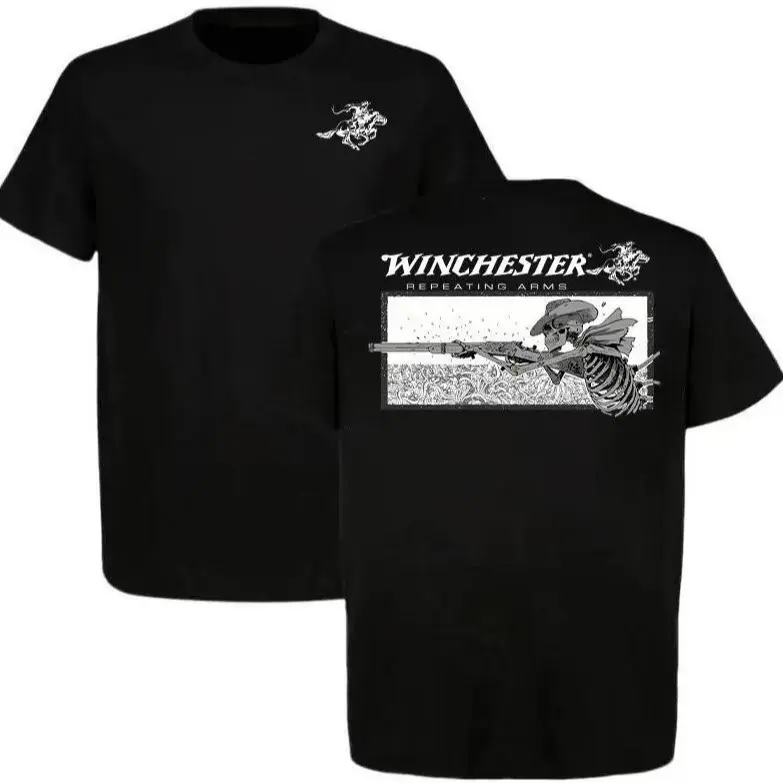 5. Winchester Skeleton Cowboy Graphic Tee - Vintage Western Heritage Shirt - Premium White Cotton Menswear - Retro Cowboy Style Top - Classic Hunting Fan Gift