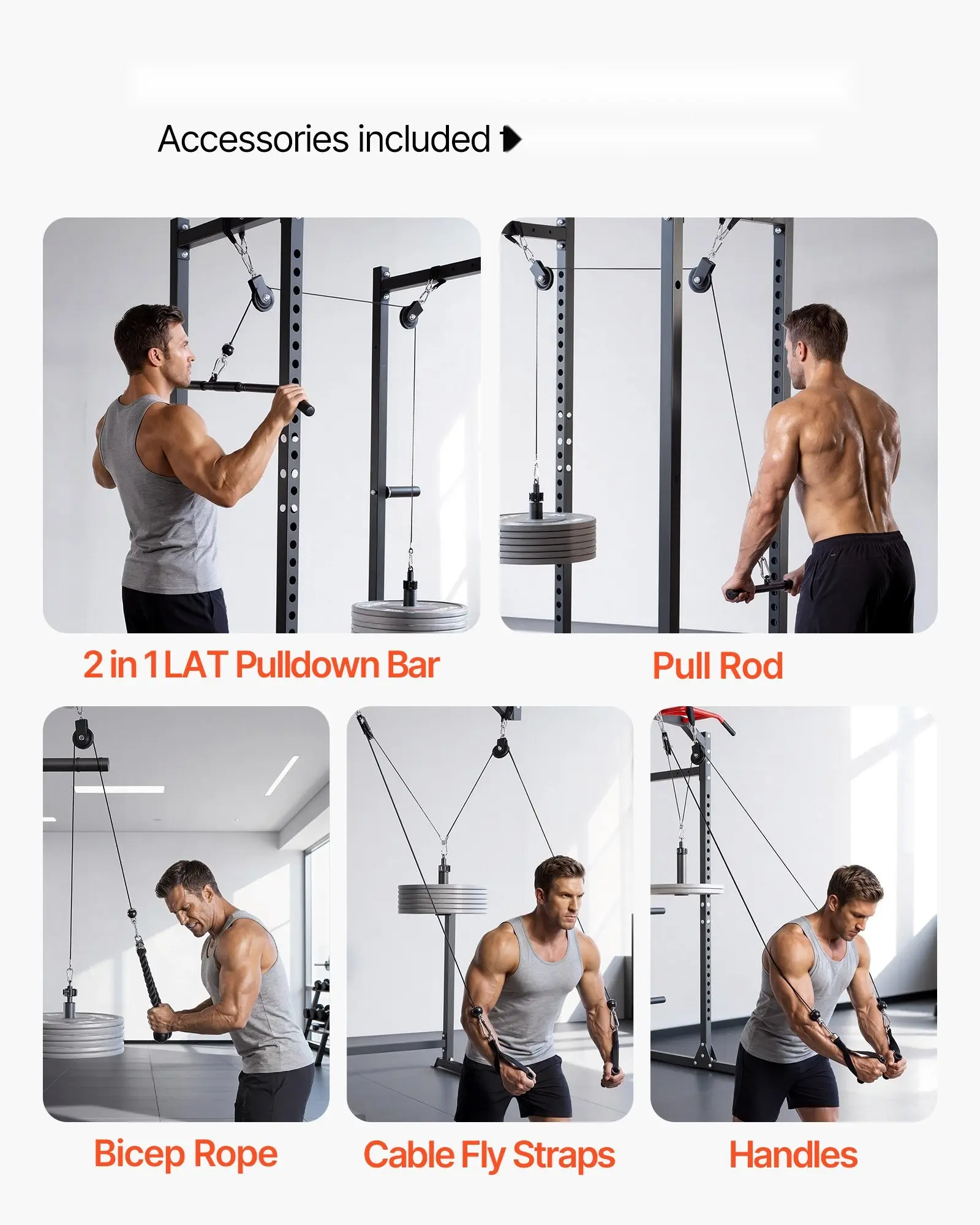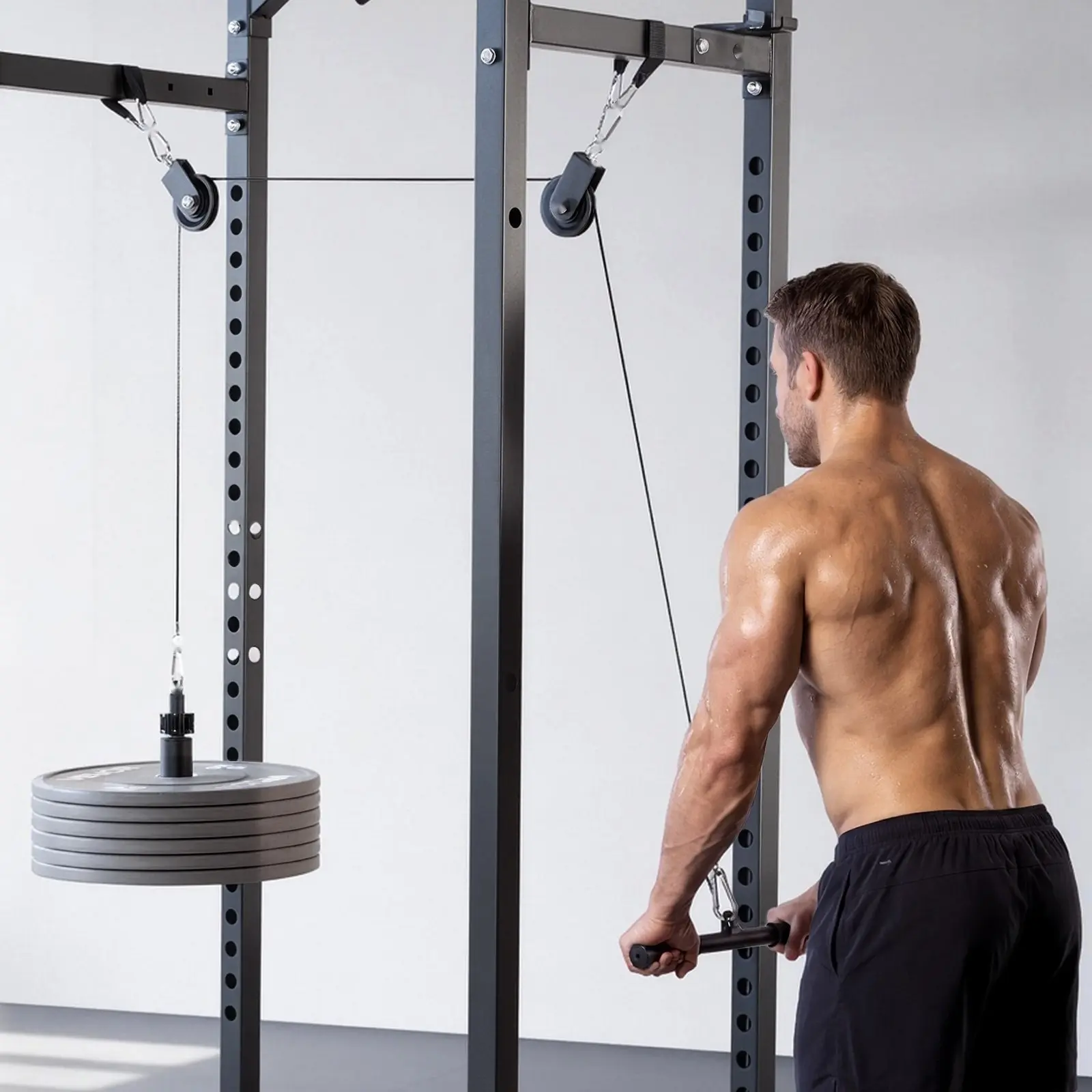 Crafted from heavy-duty steel and high-strength steel cables, this gym rack pulley attachment is designed for long-lasting performance. Its rugged materials withstand intense workoutsâfrom strength training to high-impact movementsâmaking it a reliable, gym-quality addition to any home setup.